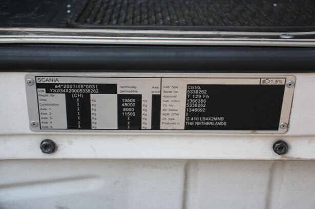 Brand: Scania Model: G 410 Chassis number: YS2G4X20005338262 Year of construction: 2014 Fuel: Diesel Engine power: Not known Transmission: Automatic Odometer reading: 548614 KM Color: white