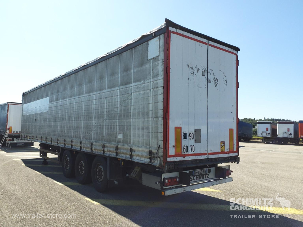 Remarks: **Safety**\\Rear underrun, Antilock Braking System ABS, Fire extinguisher holder\\\\**Exterior**\\Air suspension, Pallet box, Toolbox, Bolted chassis, Sliding roof, 1x15 and 2x7 pin plug, Antispray\\\\**Cargo securing**\\Cargo securing with certificate, DIN EN 12642 (code XL) certificate, Punched load securing side rave, Aluminium slats, Wooden - support slats\\\\**Brake system**\\Disc brake, Schmitz ROTOS\\\\**Floor**\\Wooden floor, Lashing rings in floor\\\\**Loading area**\\Length 13.620 mm, Width 2.480 mm, Height 2.700 mm, Volume 91 m³\\\\**Tyre sizes**\\1. Achse: 385/65 R22.5 , Tread depth: 15 mm / 15 mm, 2. Achse: 385/65 R22.5 , Tread depth: 8 mm / 9 mm, 3. Achse: 385/65 R22.5 , Tread depth: 13 mm / 13 mm\\\\**Other dimensions and weights**\\Payload: 31.438 kg, GVW: 38.000 kg\\\\----Disques de frein Essieu 1 reste 37,8mm Plaquettes 10% usure Disques de frein Essieu 2 reste 37,5mm Plaquettes HS usure Disques de frein Essieu 3 reste 44,5mm Plaquettes 10% usure Mines : 09 2025 -