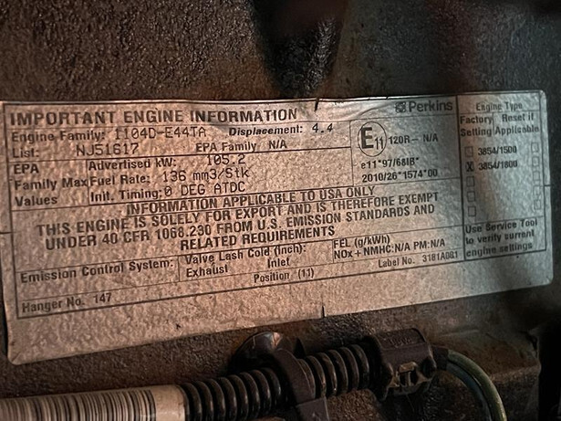 Make of engine: Perkins 1104D-E44TAG2