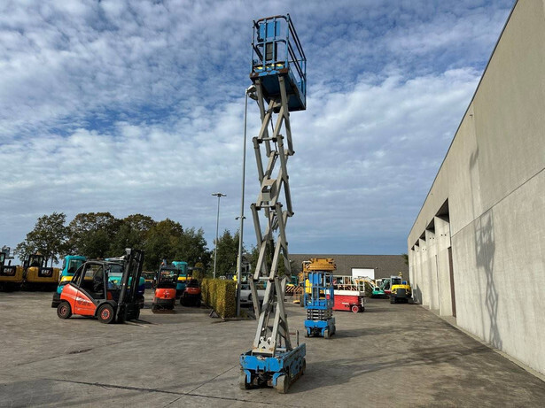 Brand: Genie Type: GS-1930 Serial number: GS3014C15726 Year of construction: 2015 Fuel: Electric Lifting capacity: 227 kg Working height: 7.85 m Operating hours read: Not known Machine weight: 1456 kg Chassis: Wheels Type: Scissor lift Tires: Non-marking tires Front and rear wheels: 12x4.5 Color: blue Platform dimensions: 2720x760 mm Transport dimensions: 2720x760x1800 mm