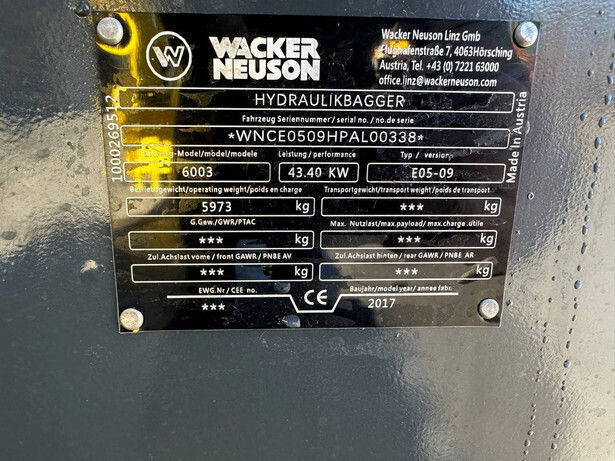 Brand: Wacker Neuson Type: 6003 Serial number: WNCE0509HPAL00338 Year of construction: 2015 Fuel: Diesel