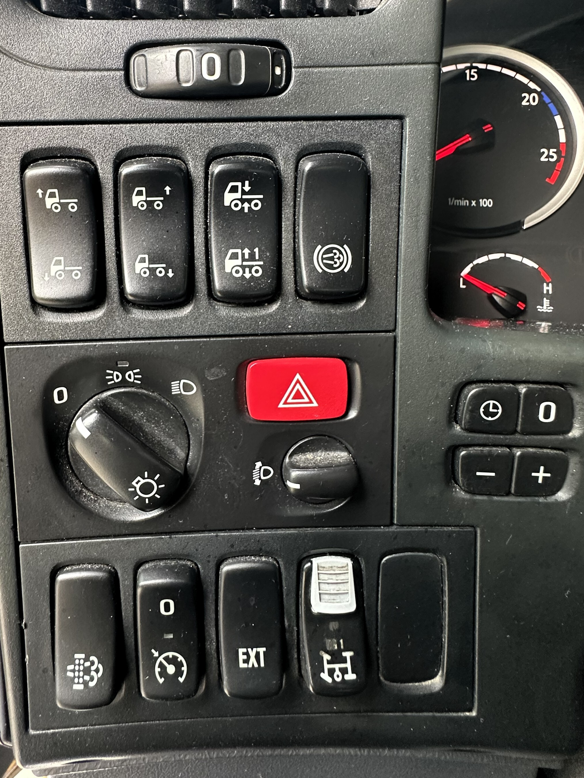 CD radio, semi-automatic transmission, cruise control, engine brake, air conditioning, steering axle + lift