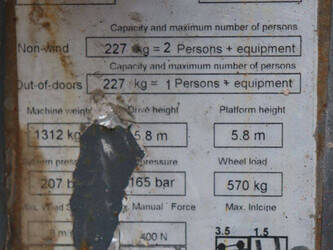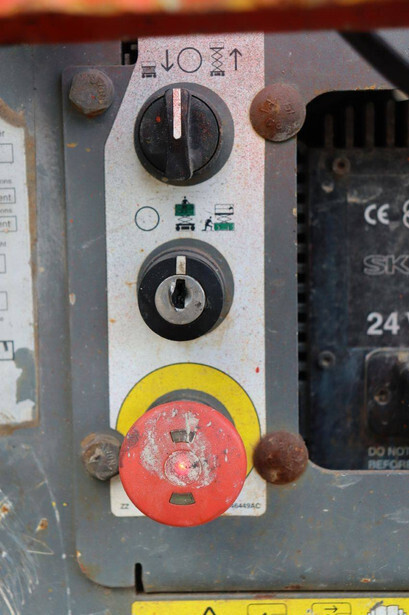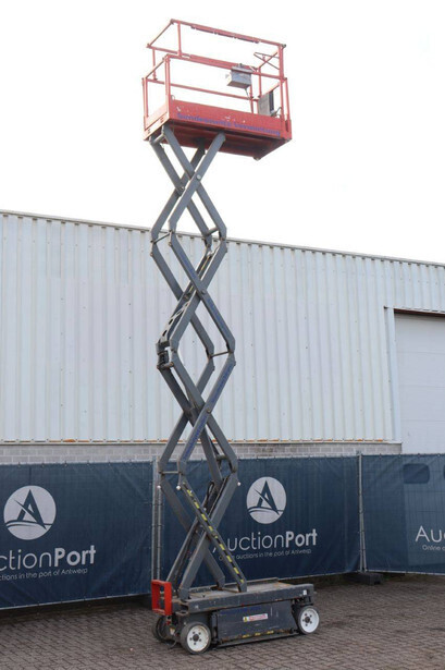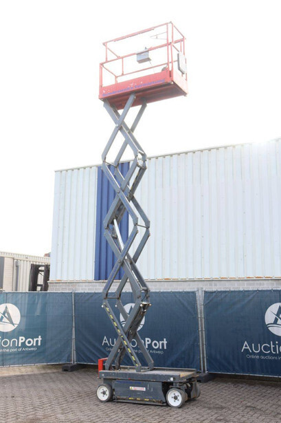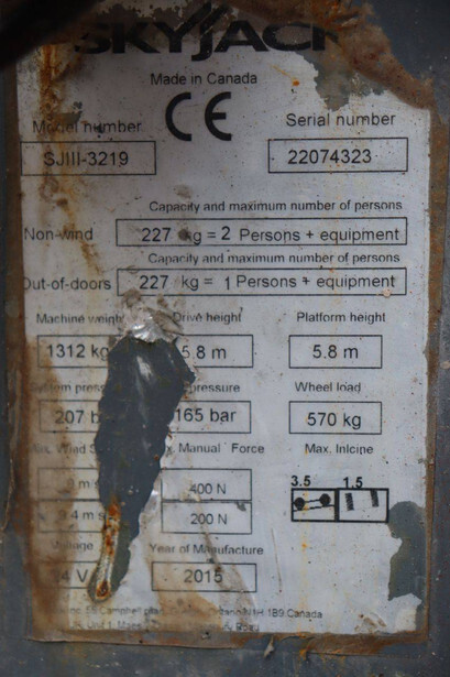 Brand: Skyjack Type: SJ 3219 Serial number: 22074323 Year of construction: 2015 Fuel: Electric Lifting capacity: 227 kg Working height: 7.8 m Operating hours read: 320 h Machine weight: 1312 kg Chassis: Wheels Type: Scissor lift Tires: Non-marking tires Color: red
