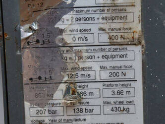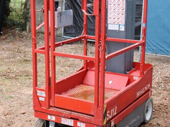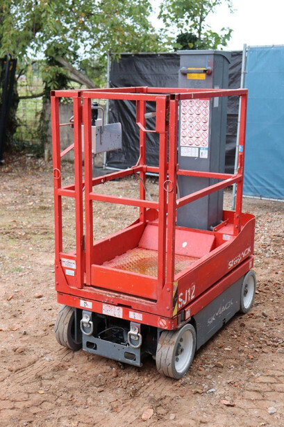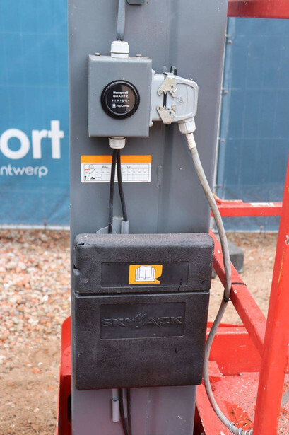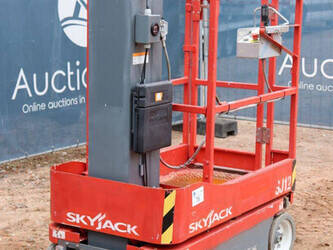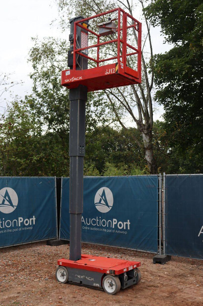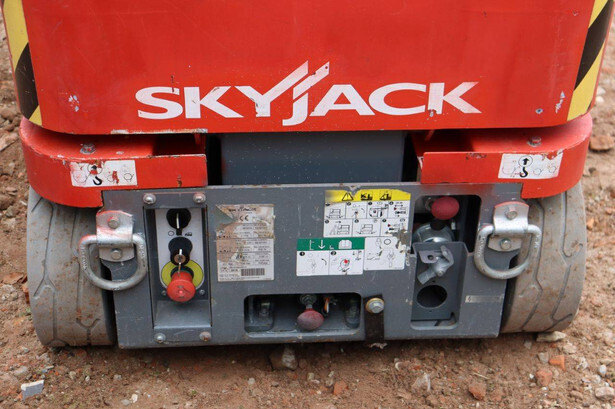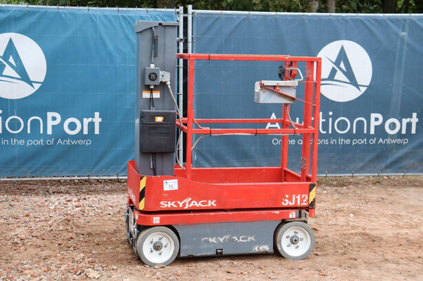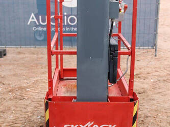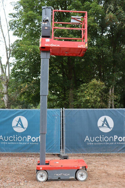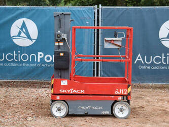 Brand: Skyjack Type: SJ12 Serial number: 14005767 Year of construction: 2015 Fuel: Electric Lifting capacity: 227 kg Working height: 5.66 m Operating hours read: 283 h Machine weight: 863 kg Chassis: Wheels Type: Mast lift Tires: Non-marking tires Color: red