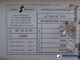 Aluminium powder tank / Cement silo, Capacity 37 m3, 1 Compartment, Max. working pressure 2.0 bar, Test pressure 3.0 bar, ABS, Air suspension, Mercedes axles, Disc brakes, Shipment dimensions 1020x250x375 cm