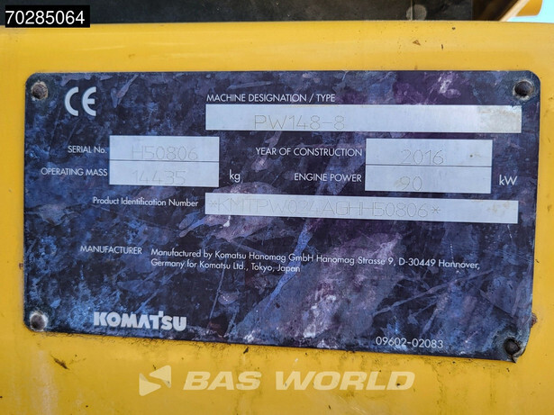 Get a detailed inspection report for 2016 Komatsu PW148-8 and buy with complete peace of mind.