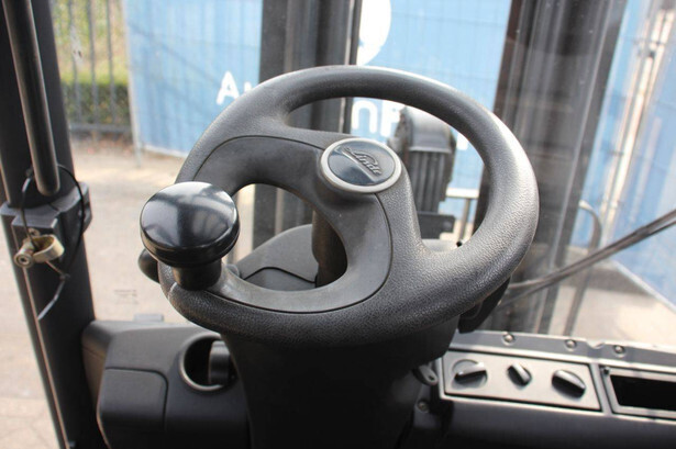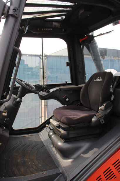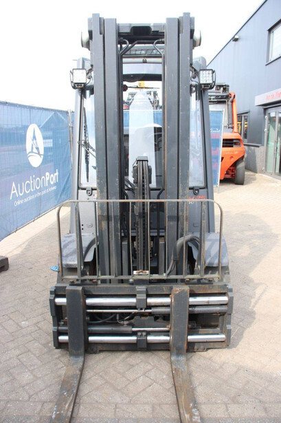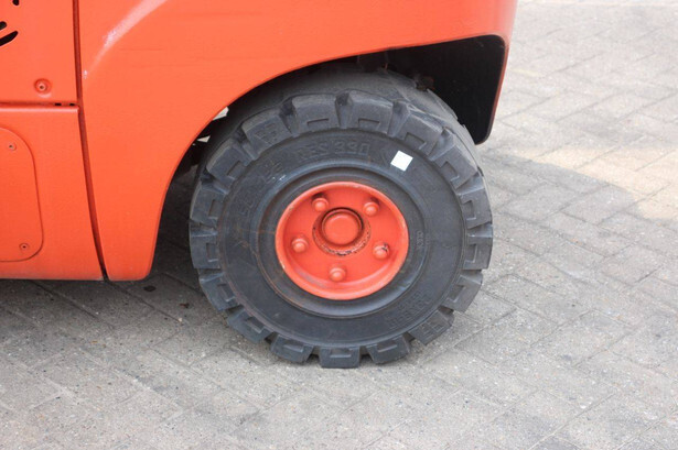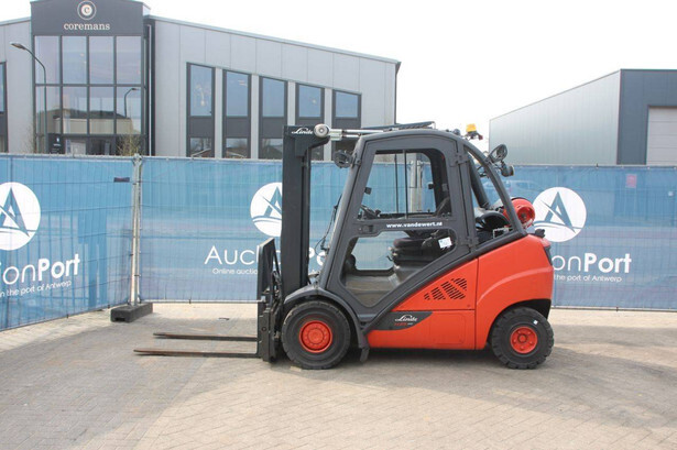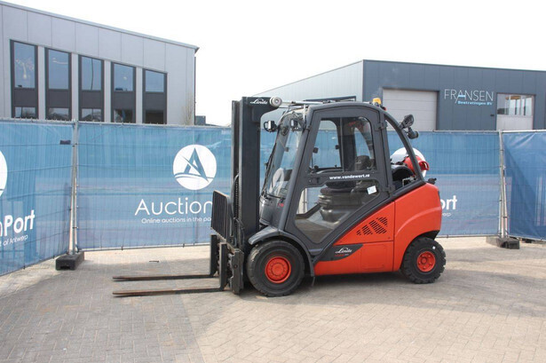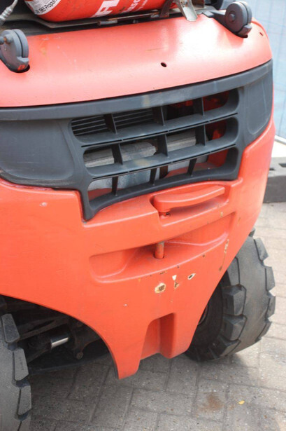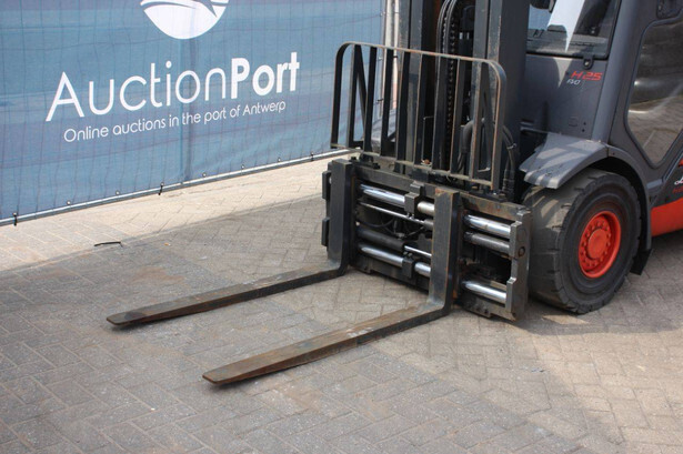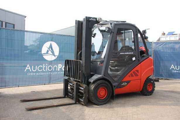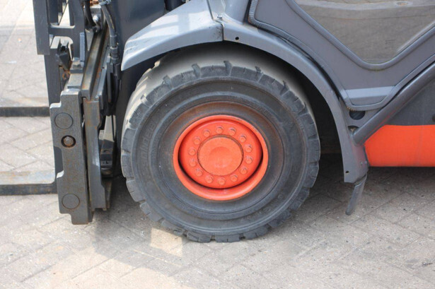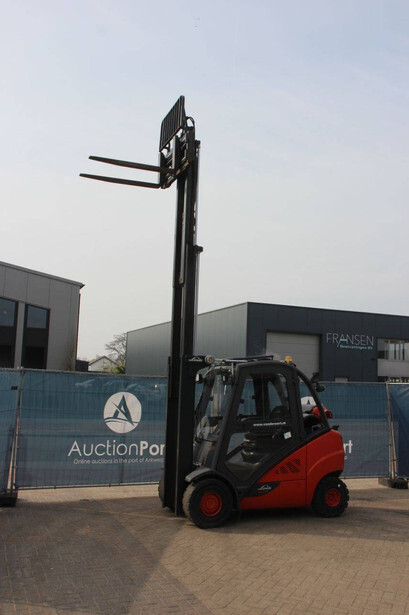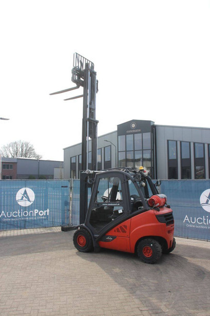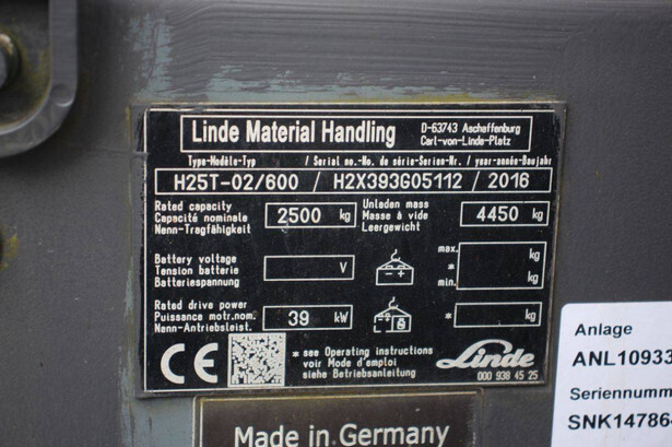 Brand: Linde Type: H25T-02/600 Serial number: H2X393G05112 Year of construction: 2016 Fuel: LPG Mast type: Plywood Sideshift: Yes Lifting capacity: 2500 kg Lifting height: 7000 mm Recorded operating hours: 11,423 h Machine weight: 4450 kg Tires: Solid tires Color: red