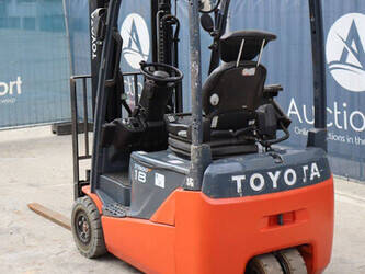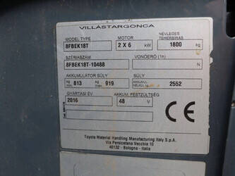 Brand: Toyota Type: Traigo 48 18 Serial number: 8FBEK18T-10488 Year of construction: 2016 Fuel: Electric Mast type: Duplex Sideshift: Yes Lifting capacity: 1800 kg Lifting height: 3000 mm Reading operating hours: 1853 h Machine weight: 2552 kg Tires: Non-marking tires Color: gray