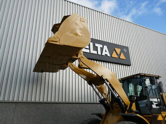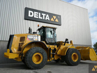 Caterpillar 966M Wheel Loader, 2.250 Engine idle hours, 9.125 Actual working hours, E-rops cab with air conditioning, 6 cylinder turbocharged Caterpillar C9.3 ACERT Technology engine with 307HP (229kW), Tier 4 Final/EU Stage IV emission, 4 speed automatic powershift transmission, joystick steering, Ride Control, GP Cat bucket with cutting edge, central grease system, Loadmaster 8000iX weighing system, rear view camera, front and rear work lights, 26.5R25 tyres, 24,000 Kg operating weight, CE marked. Machine comes straight out of work and is in clean condition. Inspections are welcome.
