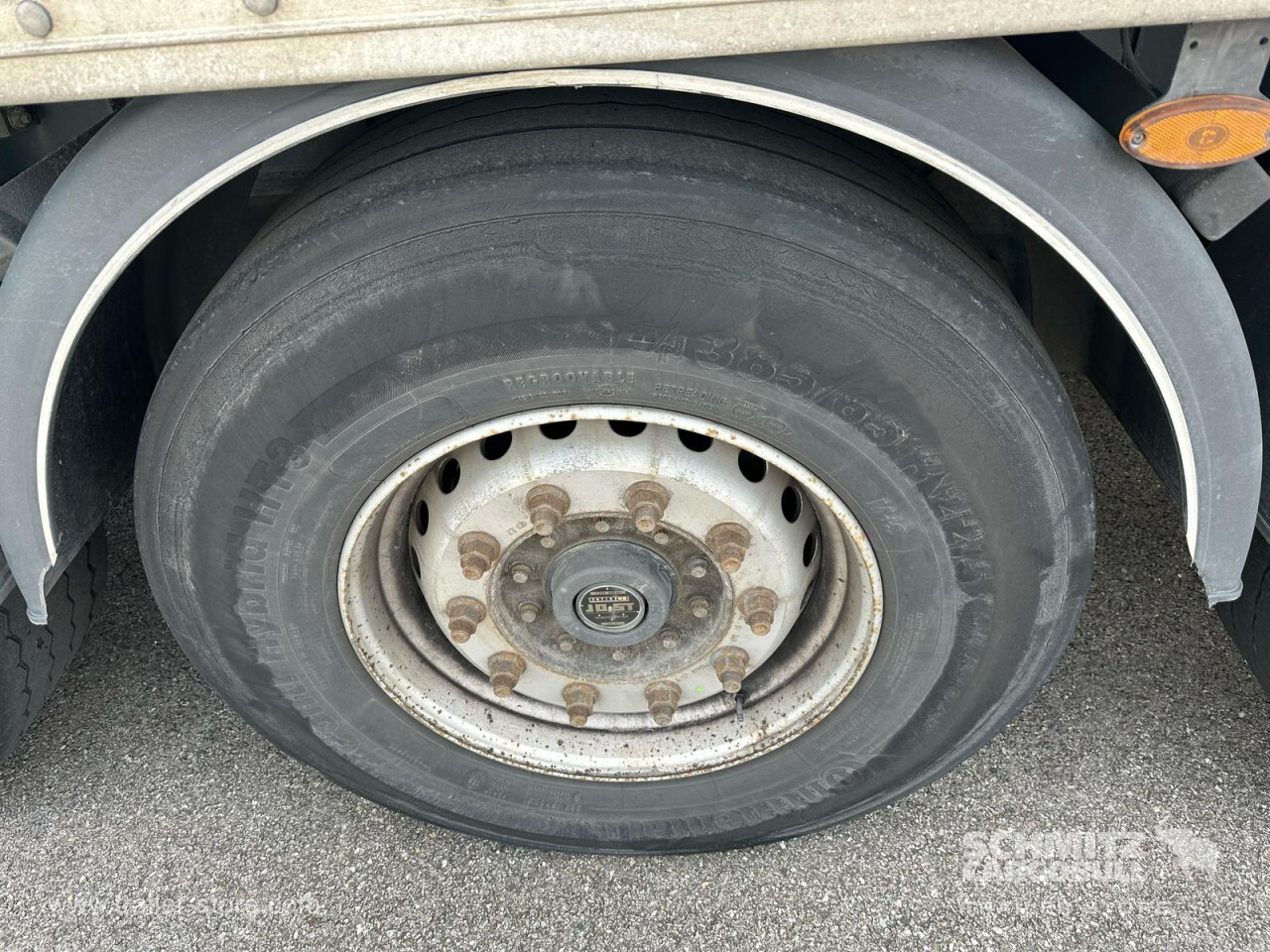 Remarks: **Safety**\\Rear underrun, Antilock Braking System ABS, Fire extinguisher holder\\\\**Exterior**\\Air suspension, Lift axle front, Roller shutter door, 1x15 and 2x7 pin plug\\\\**Cargo securing**\\Load securing rail\\\\**Brake system**\\Disc brake, SAF\\\\**Floor**\\Wooden floor\\\\**Loading area**\\Length 13.430 mm, Width 2.310 mm, Height 2.420 mm, Volume 75 m³\\\\**Tyre sizes**\\1. Achse: 385/65 R22.5 , Tread depth: 6 mm / 7 mm, 2. Achse: 385/65 R22.5 , Tread depth: 3 mm / 3 mm, 3. Achse: 385/65 R22.5 , Tread depth: 2 mm / 4 mm\\\\**Other dimensions and weights**\\GVW: 38.000 kg\\\\----Disques de frein essieu 1 reste 43,9mm Plaquettes 10% usureDisques de frein essieu 2 reste 42,5mm Plaquettes 10% usureDisques de frein essieu 3 reste 42,1mm Plaquettes 10% usureMines 06/2025 -