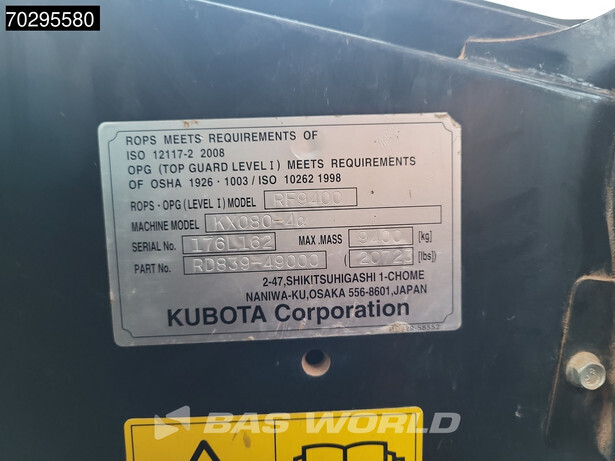 Get a detailed inspection report for 2017 KUBOTA KX080-4A and buy with complete peace of mind.