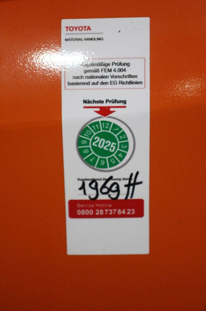 Brand: Toyota Type: SWE 140 L Serial number: 6332172 Year of construction: 2017 Fuel: Electric Mast type: Duplex Lifting capacity: 1400 kg Lifting height: 2900 mm Drive-through height: 1960 mm Operating hours read: 1969 h Color: orange