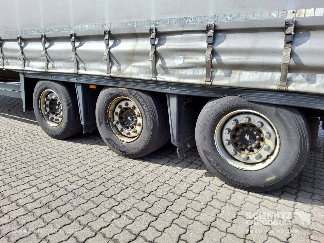 Remarks: **Safety**\\Rear underrun, Antilock Braking System ABS, Telematics system\\\\**Exterior**\\Air suspension, Bolted chassis, Gantry doors, Sliding roof, 1x15 and 2x7 pin plug, Antispray, Lifting roof (hydraulic)\\\\**Cargo securing**\\Cargo securing with certificate, DIN EN 12642 (code XL) certificate, DC 9.5 certificate, Beverage certificate, Punched load securing side rave, Pallet retaining rail, Wooden - support slats\\\\**Brake system**\\Disc brake, Schmitz ROTOS\\\\**Floor**\\Wooden floor, Lashing rings in floor\\\\**Loading area**\\Length 13.620 mm, Width 2.480 mm, Height 2.950 mm, Volume 99 m³\\\\**Tyre sizes**\\1. Achse: 435/50 R19.5 , Tread depth: 4 mm / 4 mm, 2. Achse: 435/50 R19.5 , Tread depth: 10 mm / 11 mm, 3. Achse: 435/50 R19.5 , Tread depth: 8 mm / 6 mm\\\\**Other dimensions and weights**\\GVW: 36.000 kg\\\\----