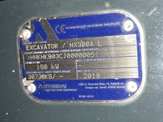 **See photos for demo machine with 222hours: Hyundai HX300A L, sn 5, YOM 2018.**