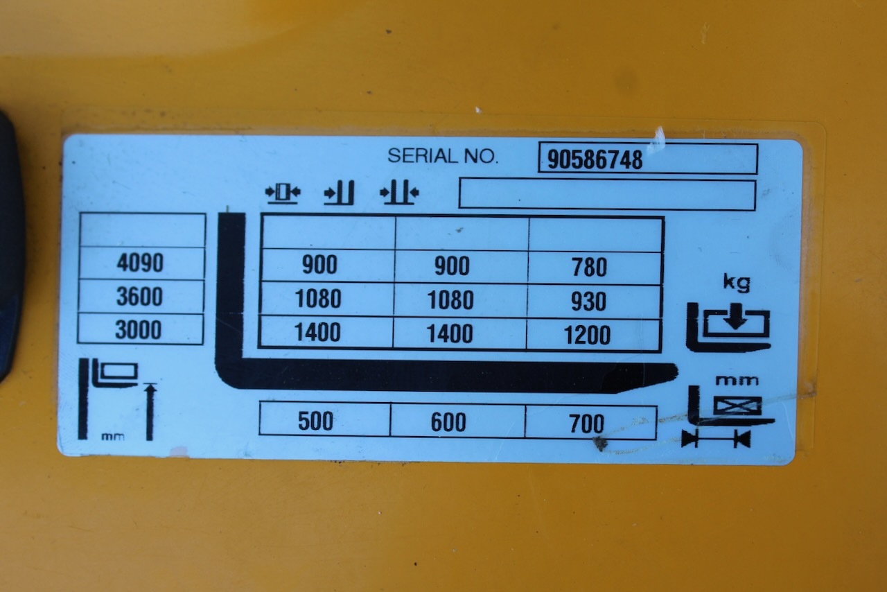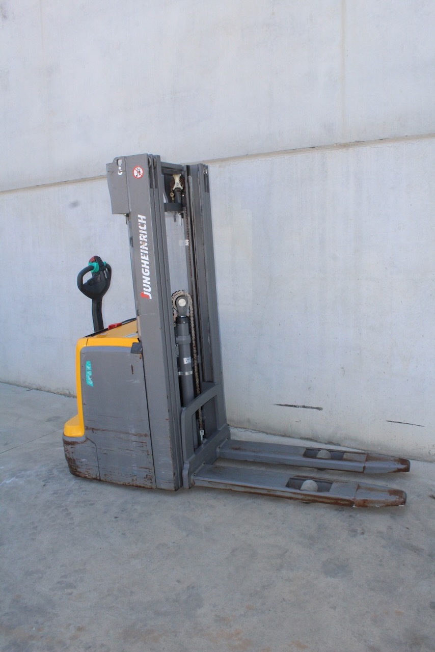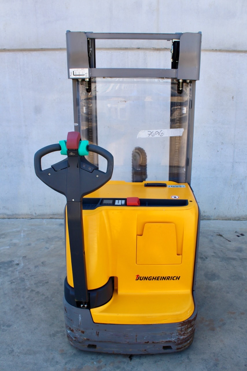 Jungheinrich EJC 214 409 DZ Load capacity: 1.400 Kg Lifting height: 4.090 mm Mast: Triplex Fork: 1.150 x 570 mm Build height: 1.820 mm Motorization: Electric Battery: 24v/246Ah Charger: 24 v Good condition, Electric steering wheel.