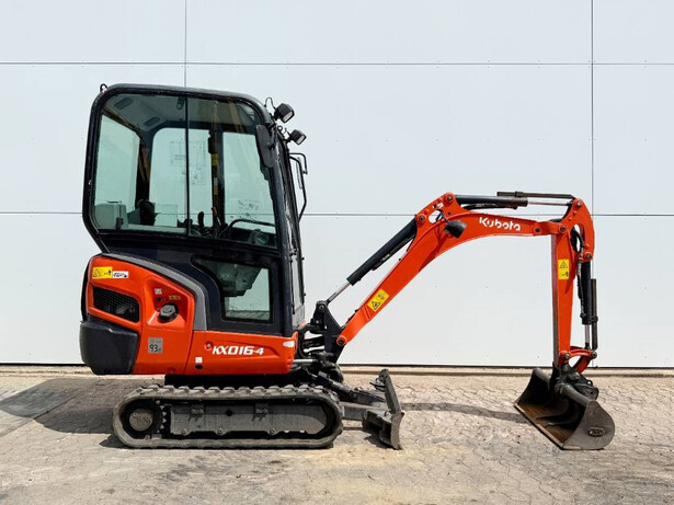 Available at Boss Machinery! This Kubota KX016-4 Excavator from 2019 has an engine power of 10 kW and counts 1222 operational hours. The total weight of this Kubota KX016-4 is 1615 kg and the dimensions are 3.75 x 1.22 x 2.32. Furthermore, this KX016-4 is equipped with Quick coupler, Extra hydraulic function, Hammer function. The Kubota Excavator also has a CE marking. Do you want more information or do you want to try the Kubota KX016-4 at our yard? Please let us know.