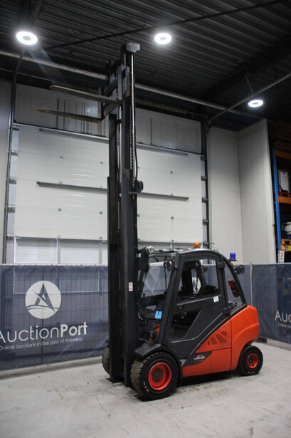Brand: Linde Type: H35 EVO Year of construction: Not known Fuel: Diesel Mast type: Duplex Sideshift: No Lifting capacity: 3500 kg Lifting height: 5450 mm Operating hours read: 8693 h Tires: Solid tires Color: orange
