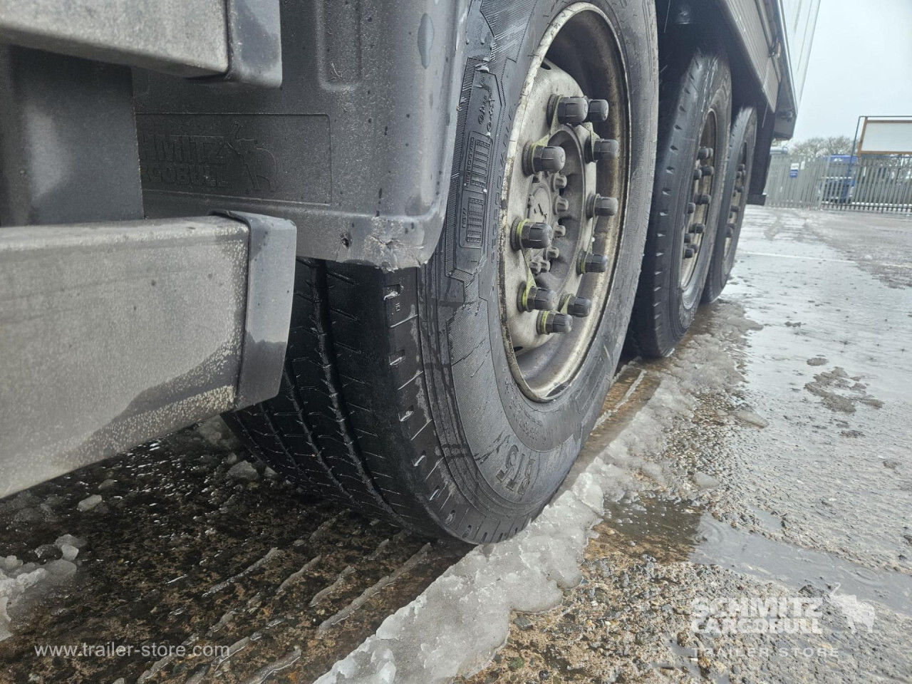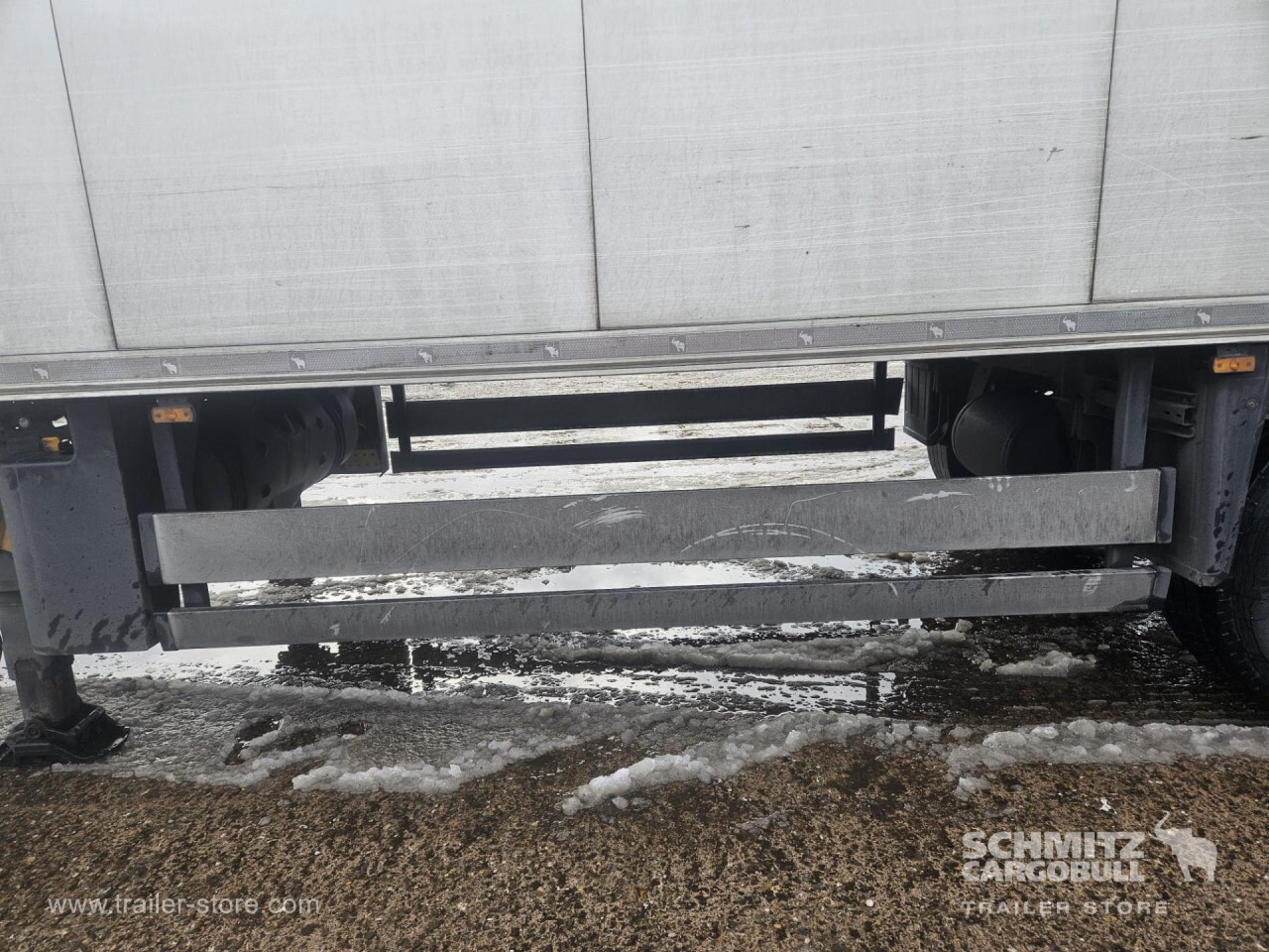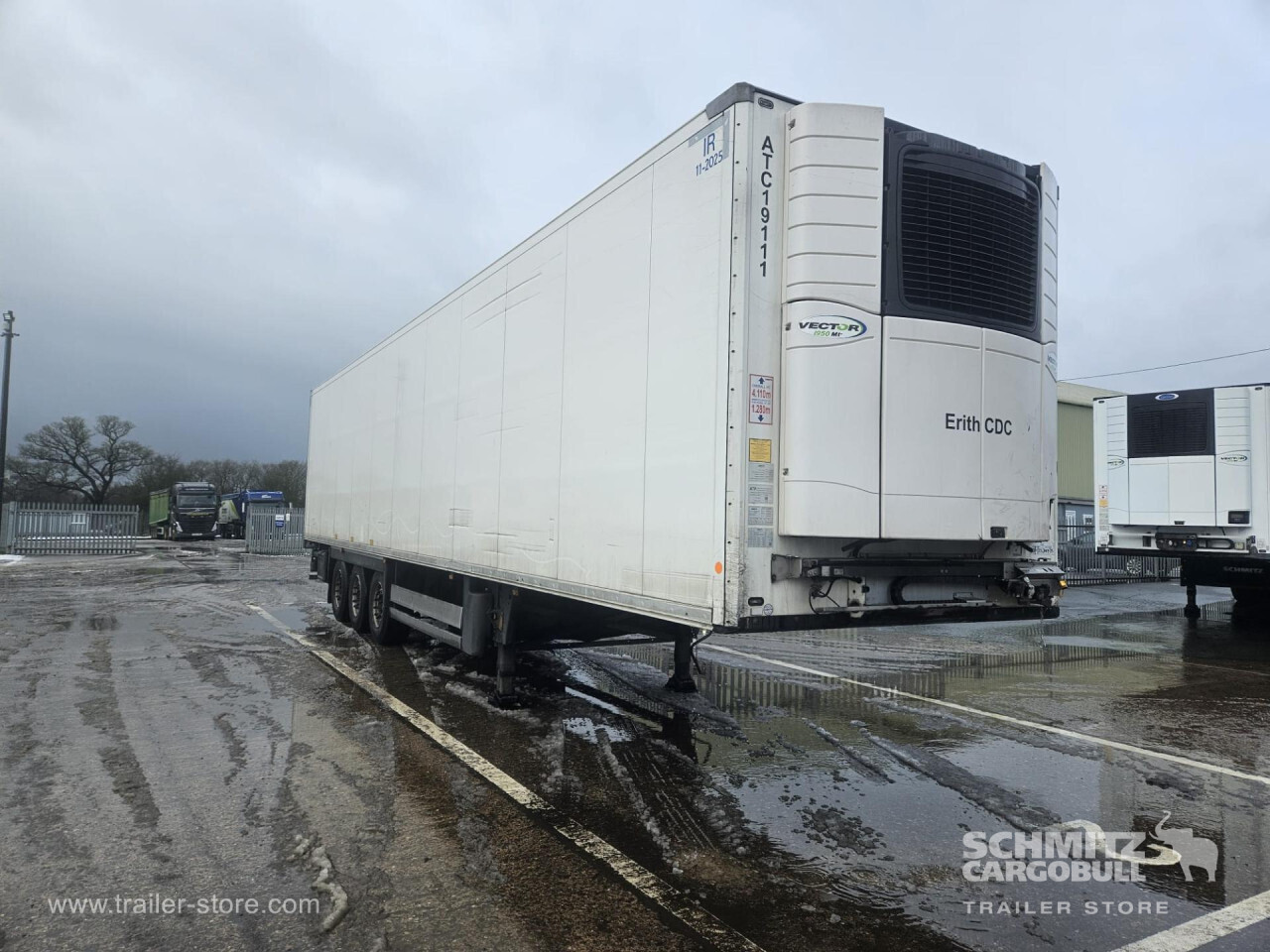 Remarks: **Safety**\\Rear underrun, Antilock Braking System ABS\\\\**Exterior**\\Air suspension, Toolbox, Ferry lashings, 1x15 and 2x7 pin plug, Antispray\\\\**Further equipment**\\2 LED reverse (Banksman) lights on rear.5 Bar tread plate floor.Pair of V7 load securing rails.LED side marker lights coupled with indicators.Ultra bright interior lighting without rotary switch.\\\\**Cargo securing**\\Load securing rail\\\\**Brake system**\\Disc brake, Schmitz ROTOS\\\\**Floor**\\Aluminum floor\\\\**Cooling unit**\\Carrier Vector 1950 MT, Diesel/Elektro, 6.449 Operating hours Diesel, 467 Operating hours electric\\\\**Loading area**\\Length 13.403 mm, Width 2.490 mm, Height 2.600 mm, Volume 86 m³\\\\**Tyre sizes**\\ 385/65 R22.5 , 385/65 R22.5 , 385/65 R22.5\\\\**Other dimensions and weights**\\Payload: 30.424 kg, GVW: 39.000 kg, Wheel base: 7.600 mm\\\\----