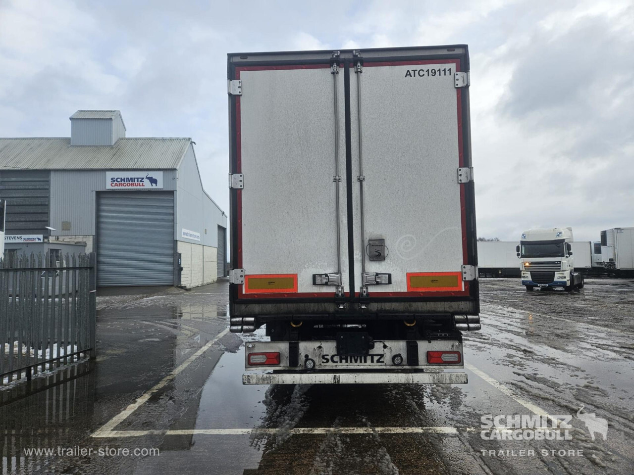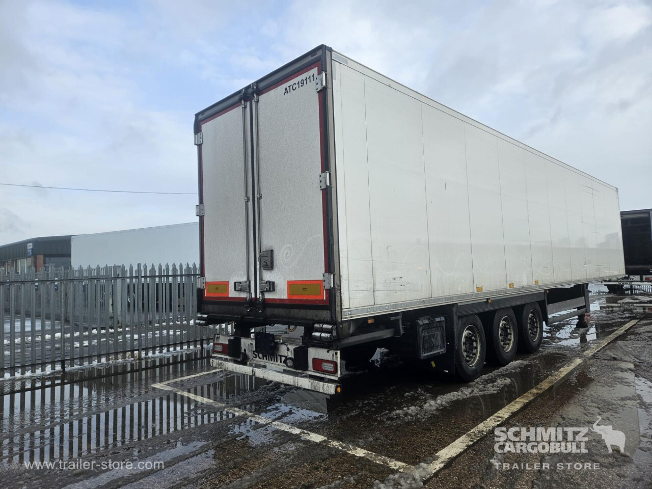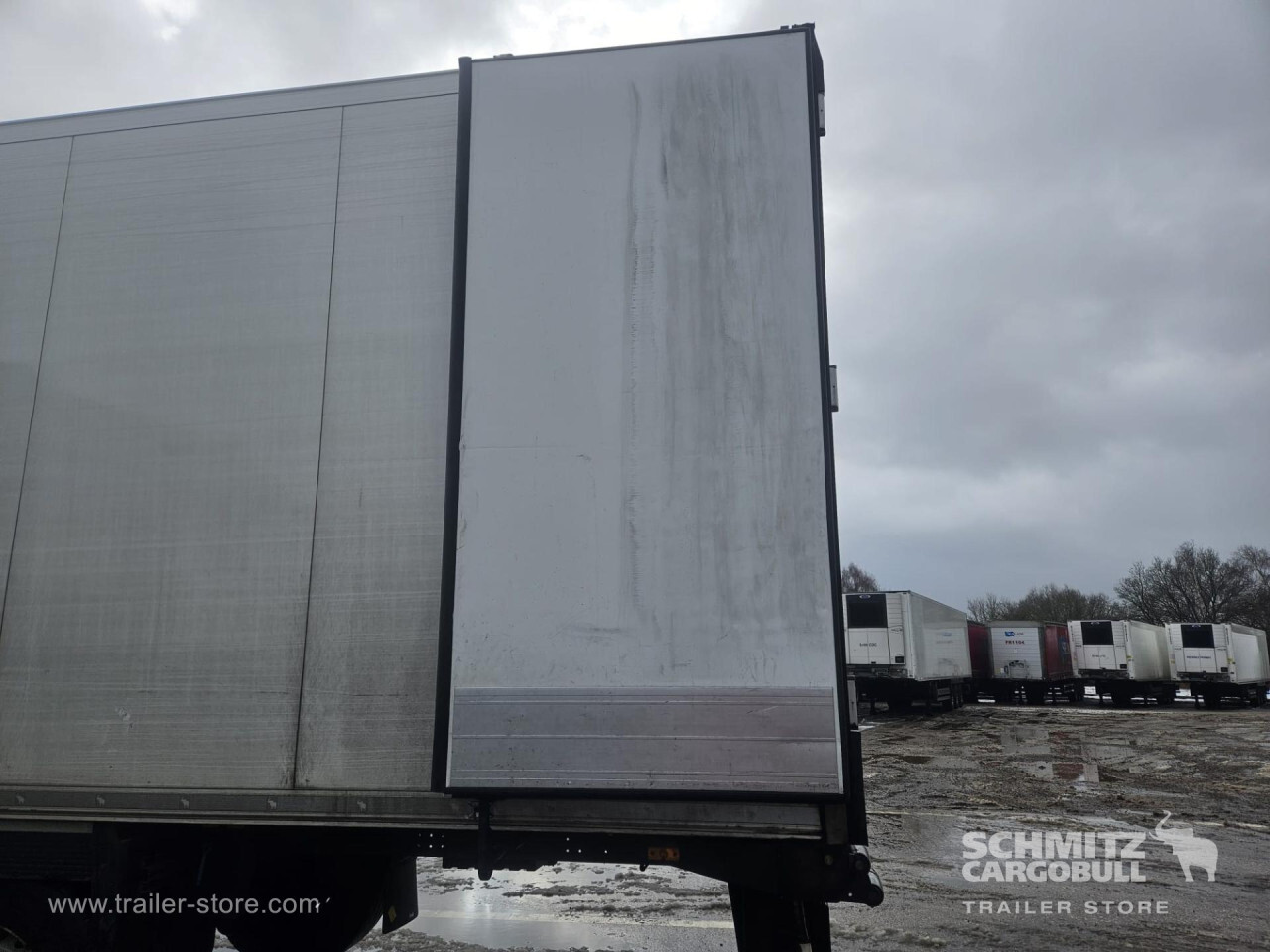 Remarks: **Safety**\\Rear underrun, Antilock Braking System ABS\\\\**Exterior**\\Air suspension, Toolbox, Ferry lashings, 1x15 and 2x7 pin plug, Antispray\\\\**Further equipment**\\2 LED reverse (Banksman) lights on rear.5 Bar tread plate floor.Pair of V7 load securing rails.LED side marker lights coupled with indicators.Ultra bright interior lighting without rotary switch.\\\\**Cargo securing**\\Load securing rail\\\\**Brake system**\\Disc brake, Schmitz ROTOS\\\\**Floor**\\Aluminum floor\\\\**Cooling unit**\\Carrier Vector 1950 MT, Diesel/Elektro, 6.449 Operating hours Diesel, 467 Operating hours electric\\\\**Loading area**\\Length 13.403 mm, Width 2.490 mm, Height 2.600 mm, Volume 86 m³\\\\**Tyre sizes**\\ 385/65 R22.5 , 385/65 R22.5 , 385/65 R22.5\\\\**Other dimensions and weights**\\Payload: 30.424 kg, GVW: 39.000 kg, Wheel base: 7.600 mm\\\\----