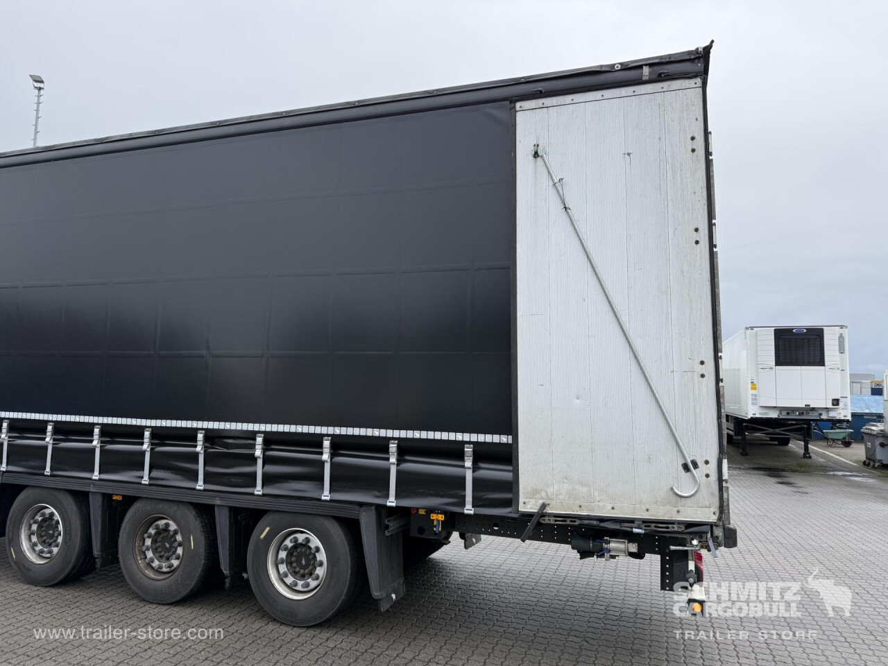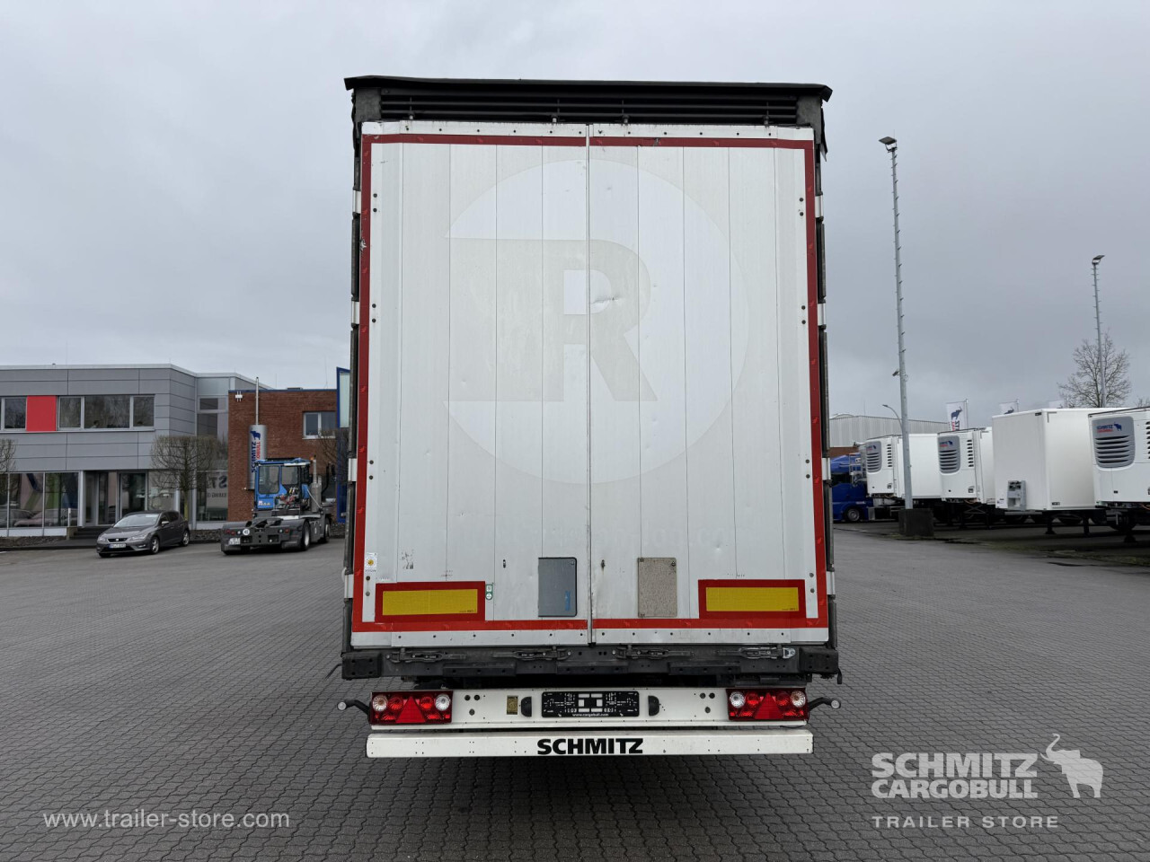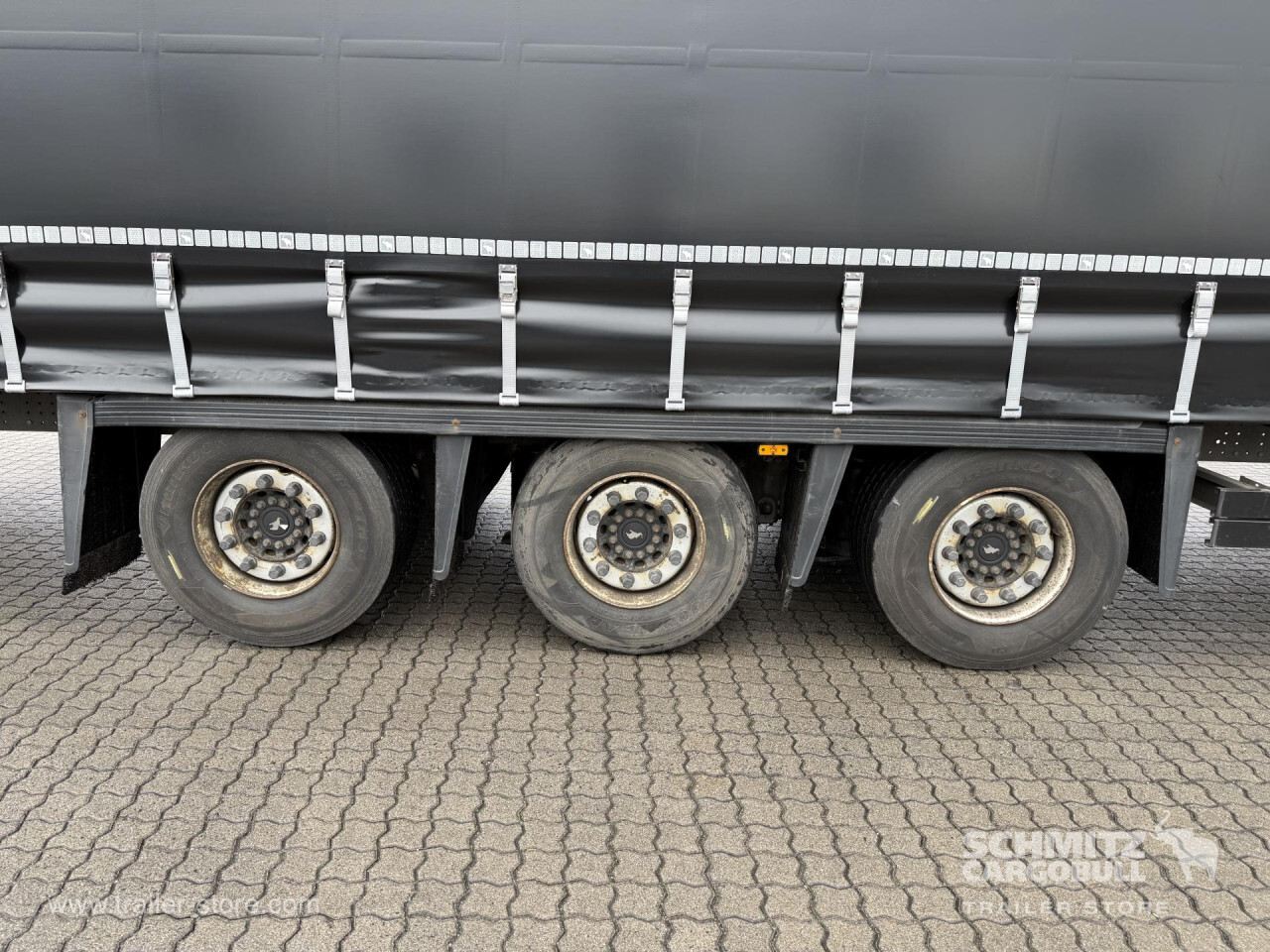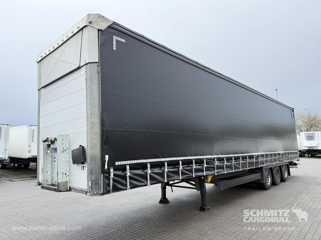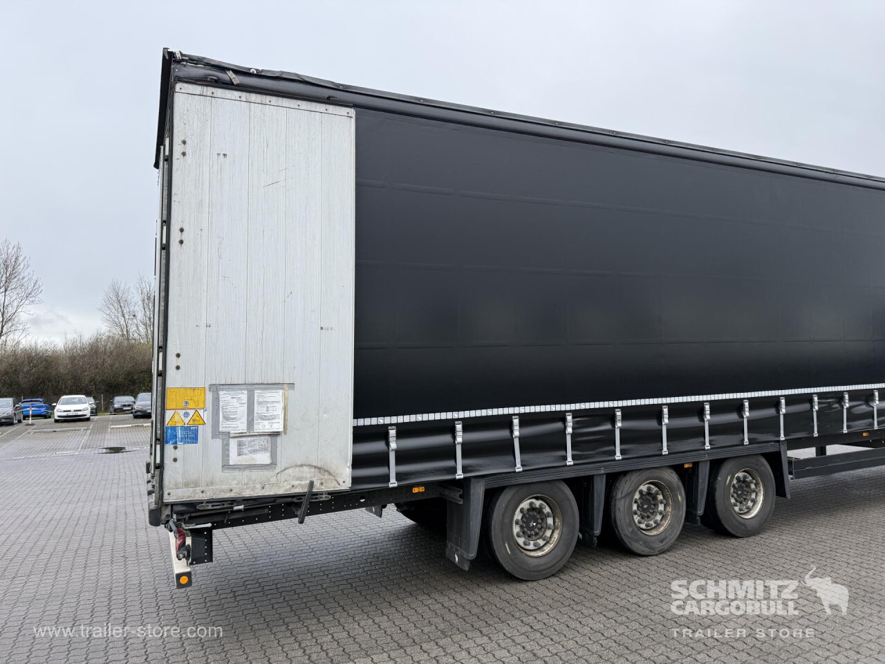 Remarks: **Safety**\\Rear underrun, Antilock Braking System ABS, Telematics system\\\\**Exterior**\\Air suspension, Bolted chassis, Sliding roof, 1x15 and 2x7 pin plug, Antispray, Lifting roof (hydraulic)\\\\**Cargo securing**\\Cargo securing with certificate, DIN EN 12642 (code XL) certificate, DC 9.5 certificate, Beverage certificate, Punched load securing side rave, Pallet retaining rail, Wooden - support slats\\\\**Brake system**\\Disc brake, Schmitz ROTOS\\\\**Floor**\\Wooden floor, Lashing rings in floor\\\\**Loading area**\\Length 13.620 mm, Width 2.480 mm, Height 2.950 mm, Volume 99 m³\\\\**Tyre sizes**\\ 435/50 R19.5 , 435/50 R19.5 , 435/50 R19.5\\\\**Other dimensions and weights**\\GVW: 36.000 kg\\\\----