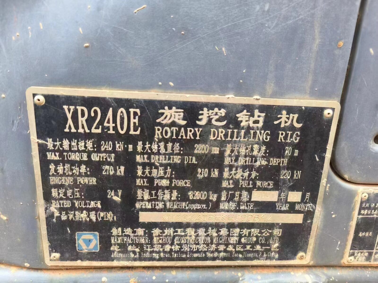 EN: XCMG Factory XR240E 80 Meter Used Depth Drilling Machine Rig Rotary Drill Price for Sale