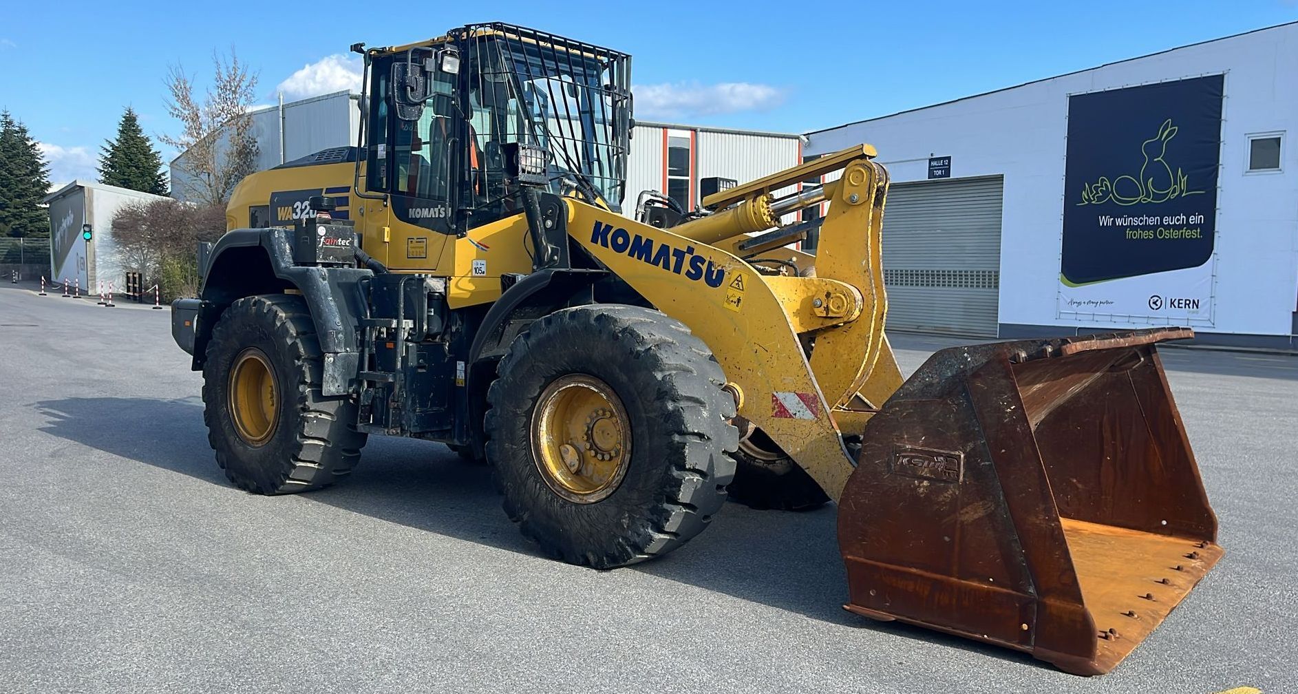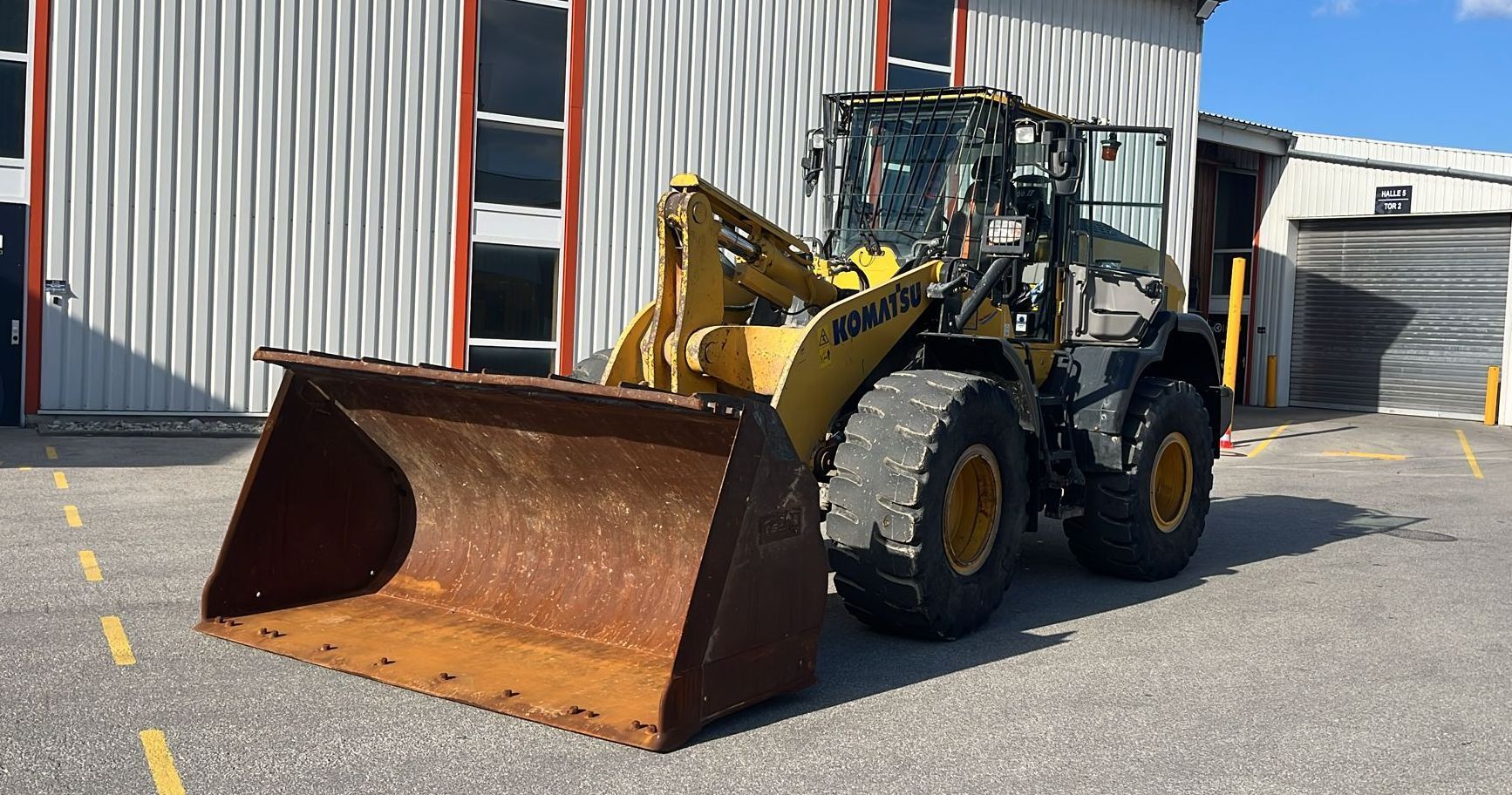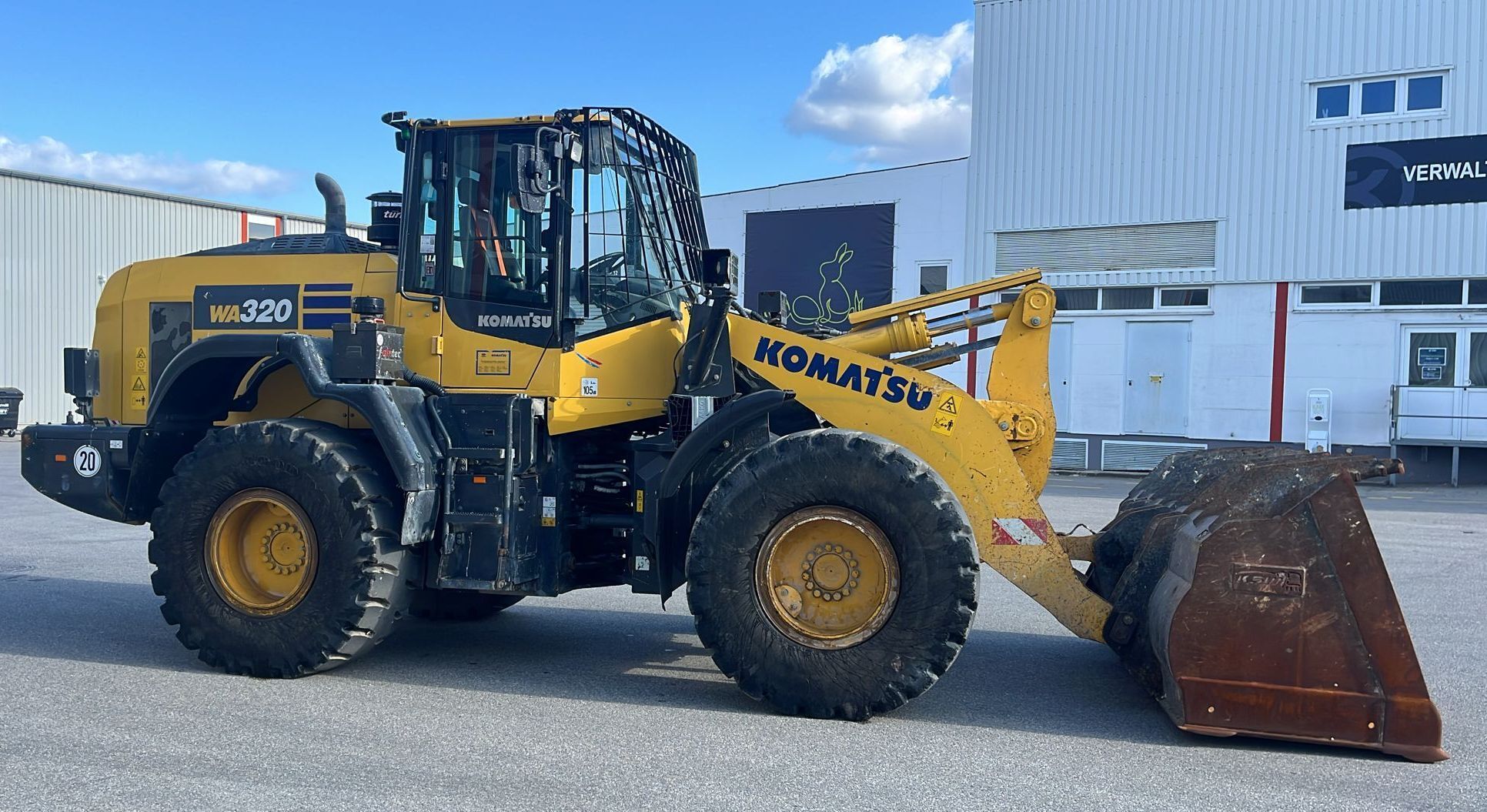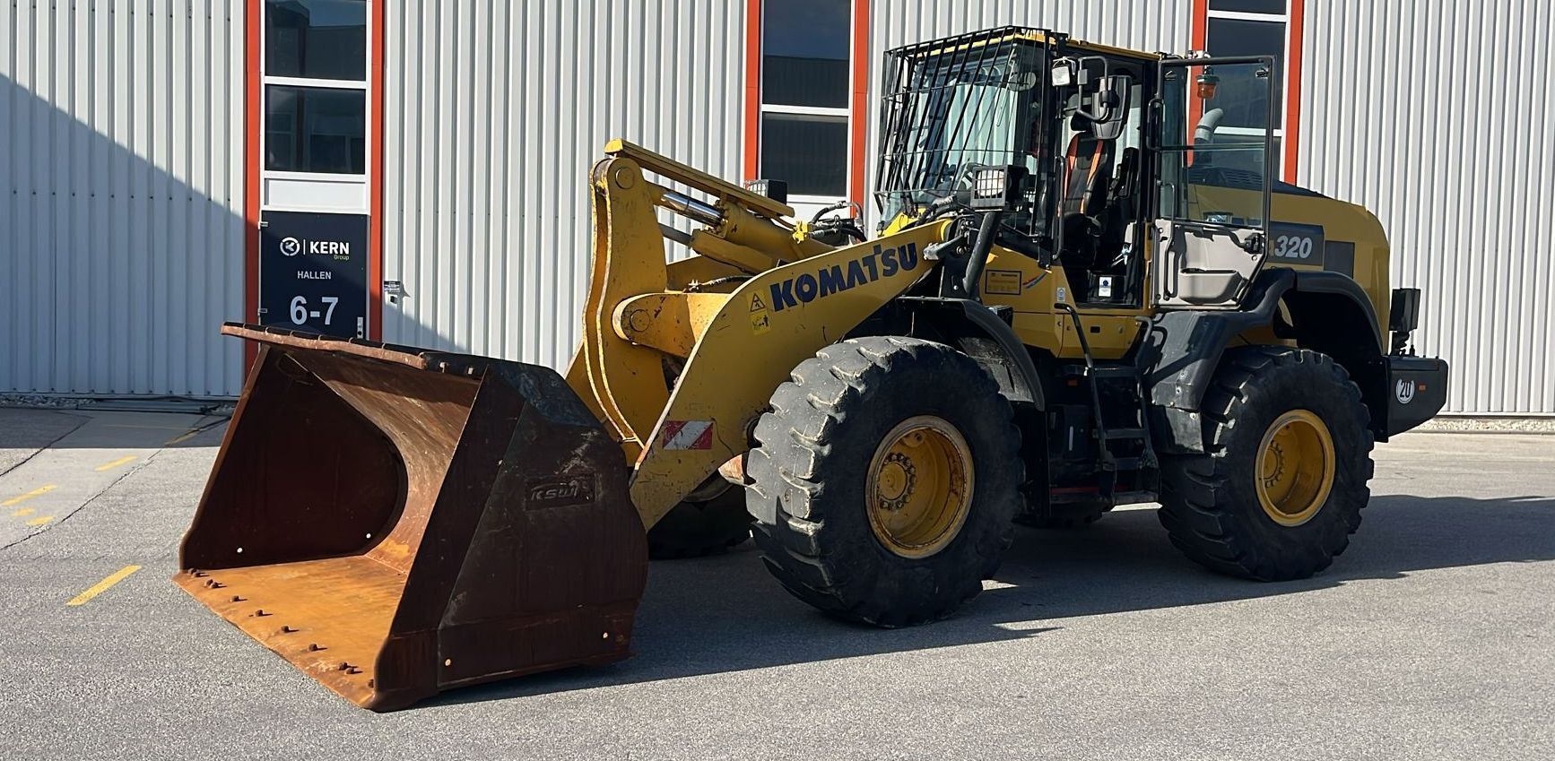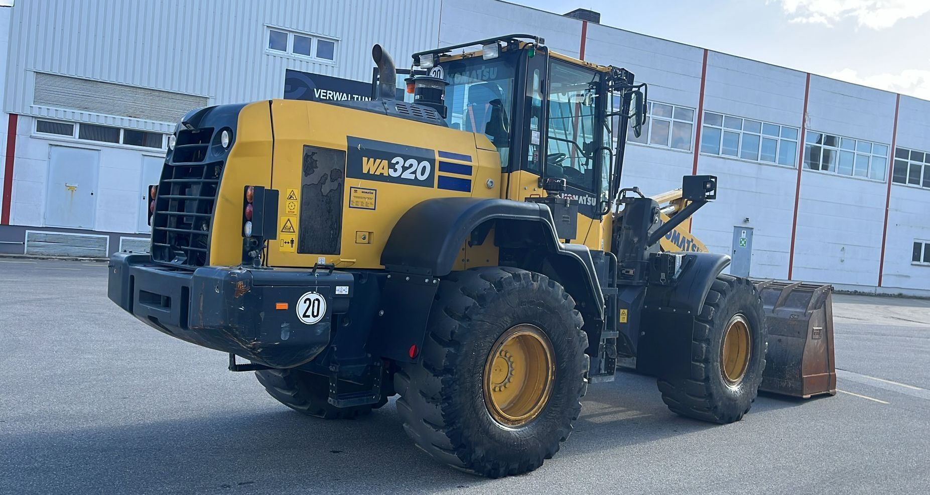 Komatsu WA320-8EO Weight around ca 16,300 kg Engine / Type Komatsu SAA6D Power / HP / KW 172 / 127 Emission standard V Tires / type / size 23.5 R25 *front in % good ca 50% good *back in % good ca 50% good Speed 20 km/h shove (capacity approx. / type) Shovel with cutting edge Aircondition Aircondition Central lubrication Central lubrication rear view camera Rear view camera CE-certificate Original CE Location Plattling, Germany Transport-dimensions L/W/H 8,380 x 2,925 x 3,390mm other details Turbo II