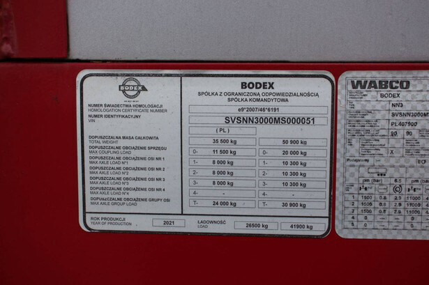 Brand: Bodex Type: NN3 Chassis number: SVSNN3000MS000051 Year of construction: 2021 MTM: 50900 kg Number of axles: 3 Brakes: Drum brakes