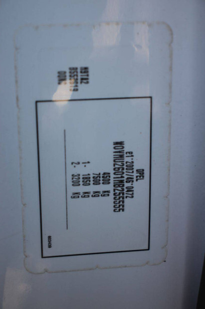 Brand: Opel Model: R4500 Movano Chassis number: W0VMU2601MB255555 Date of first registration: 2021 Fuel: Diesel Engine power: 120 kW Transmission: Manual Odometer reading: 108058 KM Color: white