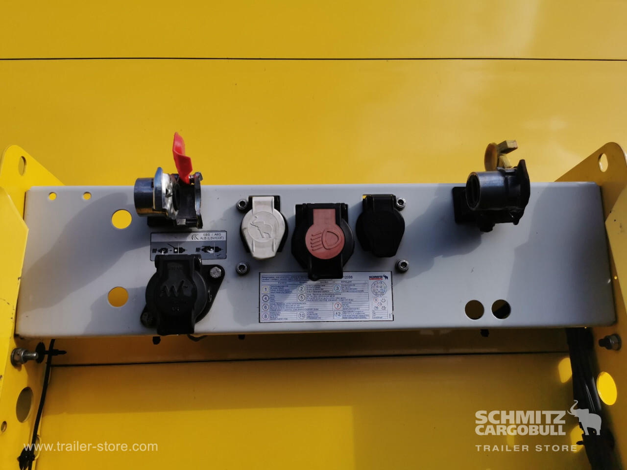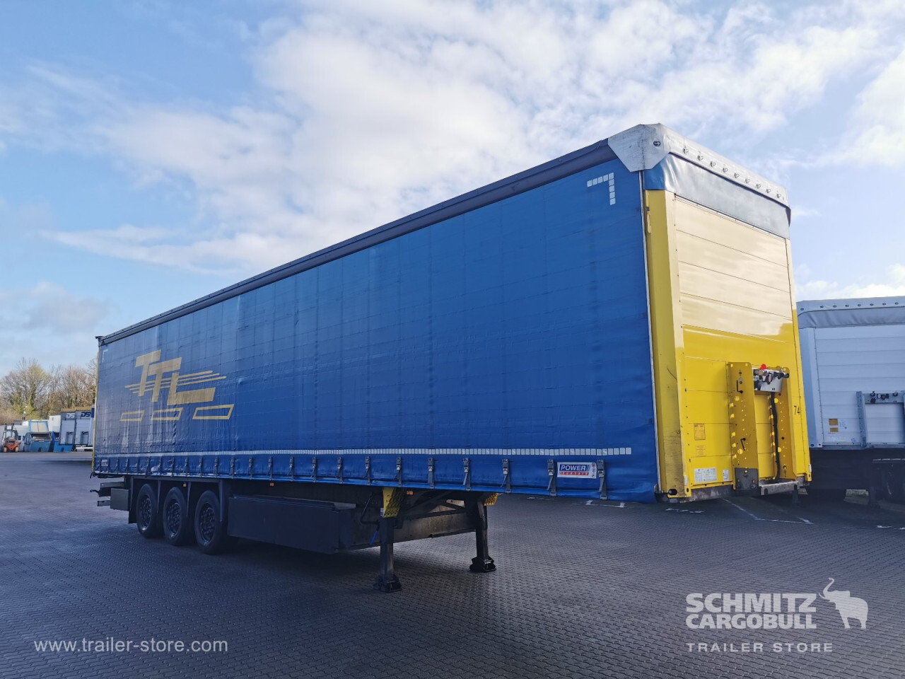 Remarks: **Safety**\\Rear underrun, Antilock Braking System ABS\\\\**Exterior**\\Air suspension, Lift axle front, Pallet box, Toolbox, Bolted chassis, Gantry doors, Sliding roof, 1x15 and 2x7 pin plug, Antispray, Power Curtain both sides, Stowage box\\\\**Cargo securing**\\Cargo securing with certificate, DIN EN 12642 (code XL) certificate, DC 9.5 certificate, Beverage certificate, Punched load securing side rave, Pallet retaining rail\\\\**Brake system**\\Disc brake, Schmitz ROTOS\\\\**Floor**\\Wooden floor, Lashing rings in floor\\\\**Loading area**\\Length 13.620 mm, Width 2.480 mm, Height 2.730 mm, Volume 92 m³\\\\**Tyre sizes**\\1. Achse: 385/55 R22.5 , Tread depth: 3 mm / 5 mm, 2. Achse: 385/55 R22.5 , Tread depth: 3 mm / 3 mm, 3. Achse: 385/55 R22.5 , Tread depth: 3 mm / 4 mm\\\\**Other dimensions and weights**\\GVW: 36.000 kg\\\\----