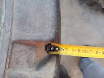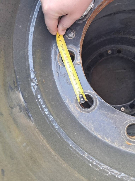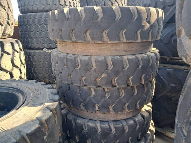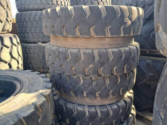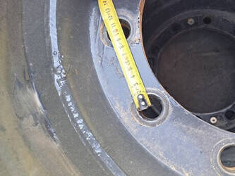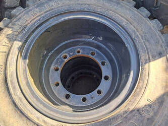 Solid double excavator tires on rims in good condition.