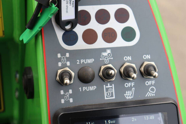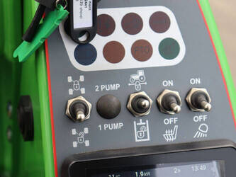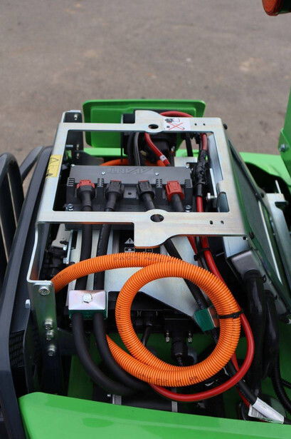 Battery capacity 27 kWh Driving speed 10km/h Hydraulic quick-change system Road lighting Joystick 6 functions Side weights 2x 90 kg LED lighting kit Including closed container 115 cm