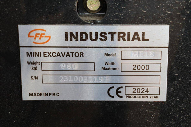 Brand: FF Industrial Type: ME18 Serial number: 2310032197 Year of construction: 2024 Fuel: Diesel Quick change: No Reading operating hours: 1 h Running gear: Tracks Machine weight: 980 kg Color: red