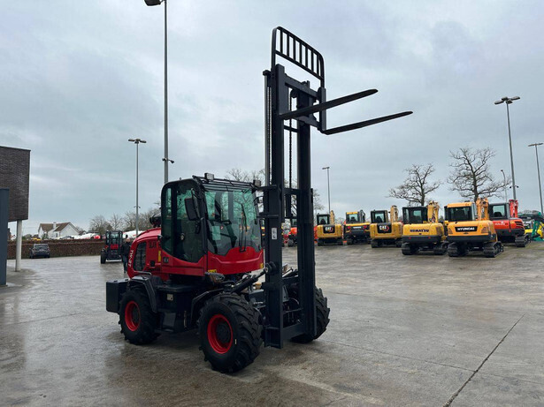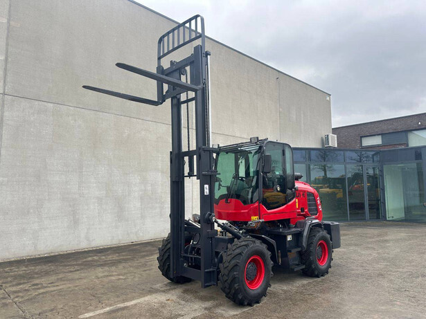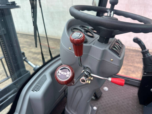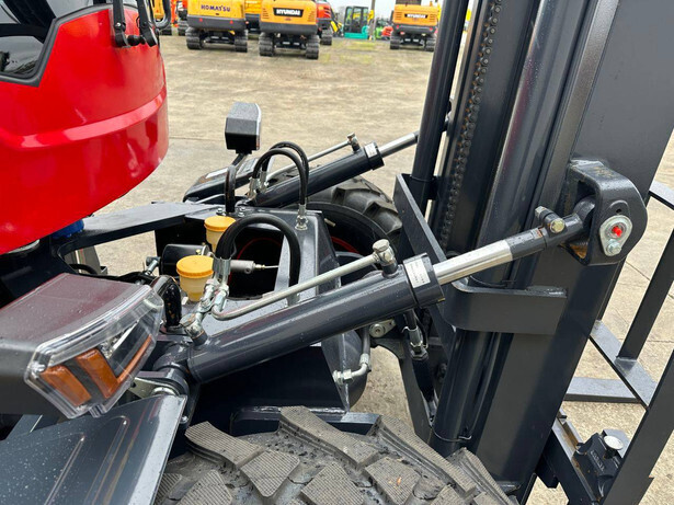 Engine make and type: HH490K1 Power: 42 kW Cylinders: 4 Sideshift: No Mast type: Duplex Lifting capacity: 3000 kg Lifting height: 3000 mm Reading operating hours: 1 h Machine weight: 4200 kg Transport dimensions (L x W x H): 5800x1750x2700 mm Tires: Pneumatic tires Front and rear wheels: 20.5/70-16 Color: red