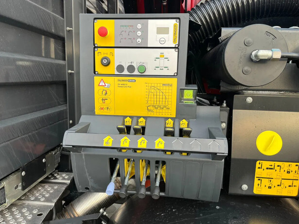 Palfinger PK 44502 Crane Crane type: Hydraulic knuckle boom crane for heavy lifting. Maximum lifting capacity: 14,000 kg, see diagram. Maximum reach: 16 meters hydraulically extendable, Operation: Radio remote control for precision work. Stability: Hydraulic support legs for maximum safety during lifting.