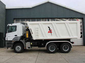 The Mercedes-Benz Axor 3344 K 6x4 Tipper Truck is a powerful and robust truck, specially designed for heavy-duty applications in the construction and mining sectors. Thanks to the strong drivetrain, the advanced hydraulic tipping system and the durable chassis, this vehicle is perfect for transporting and unloading large quantities of sand, gravel, stones, and other heavy materials, even under the most challenging conditions.