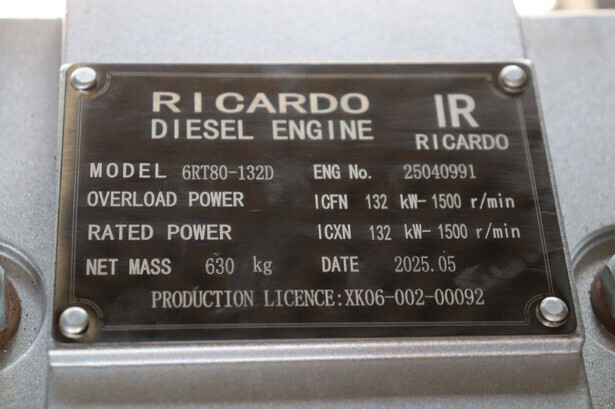 Brand: Ricardo Type: GF2-W100 Year of construction: 2025 Fuel: Diesel Engine Brand: Ricardo Power: 125 kVA Voltage: 380 V Current: 151 A Machine weight: 1860 kg Color: gray