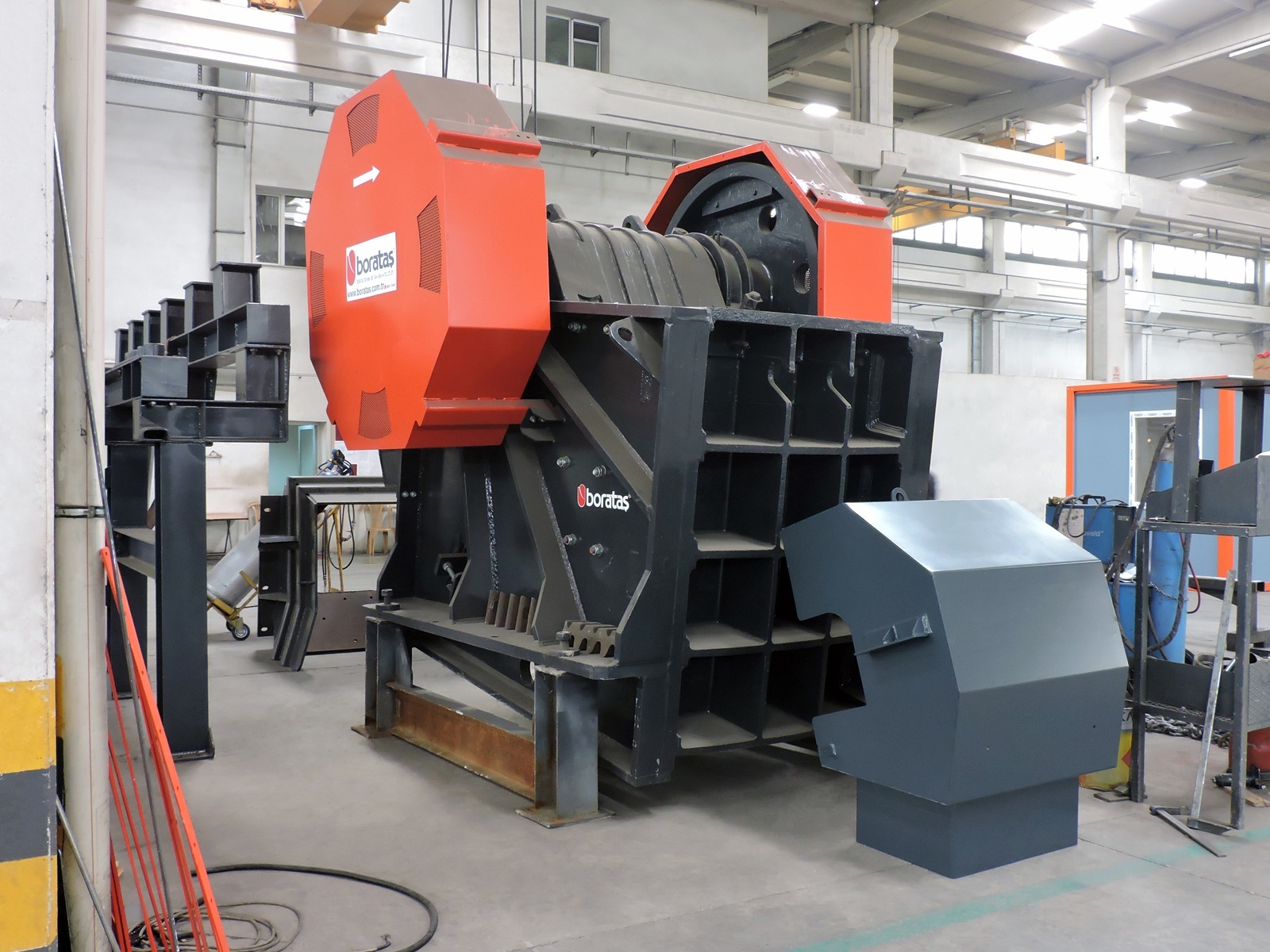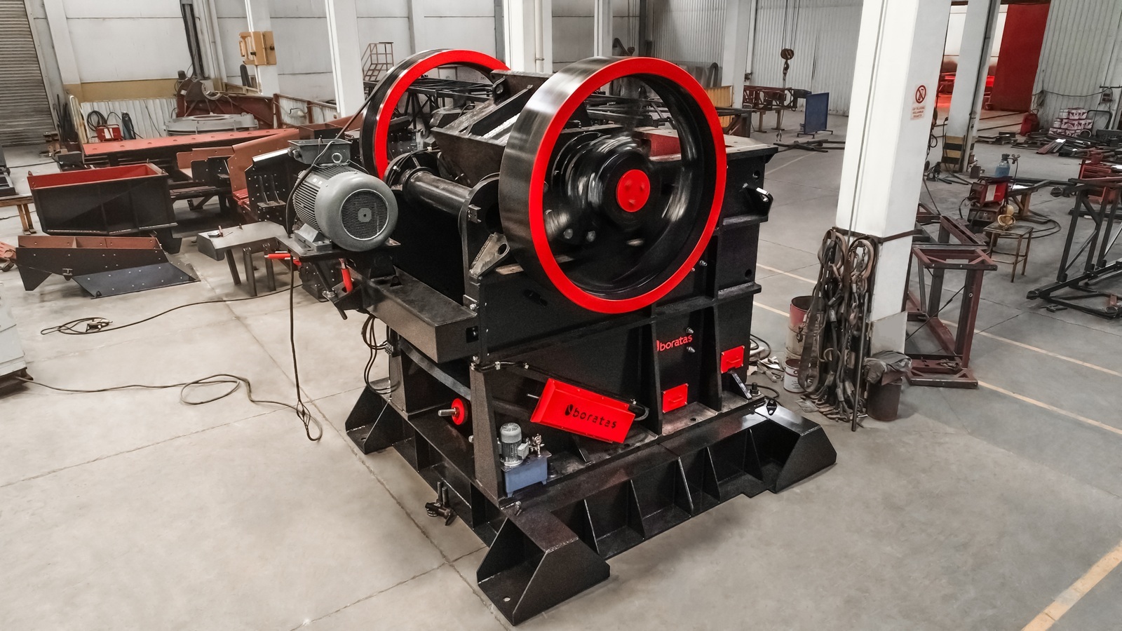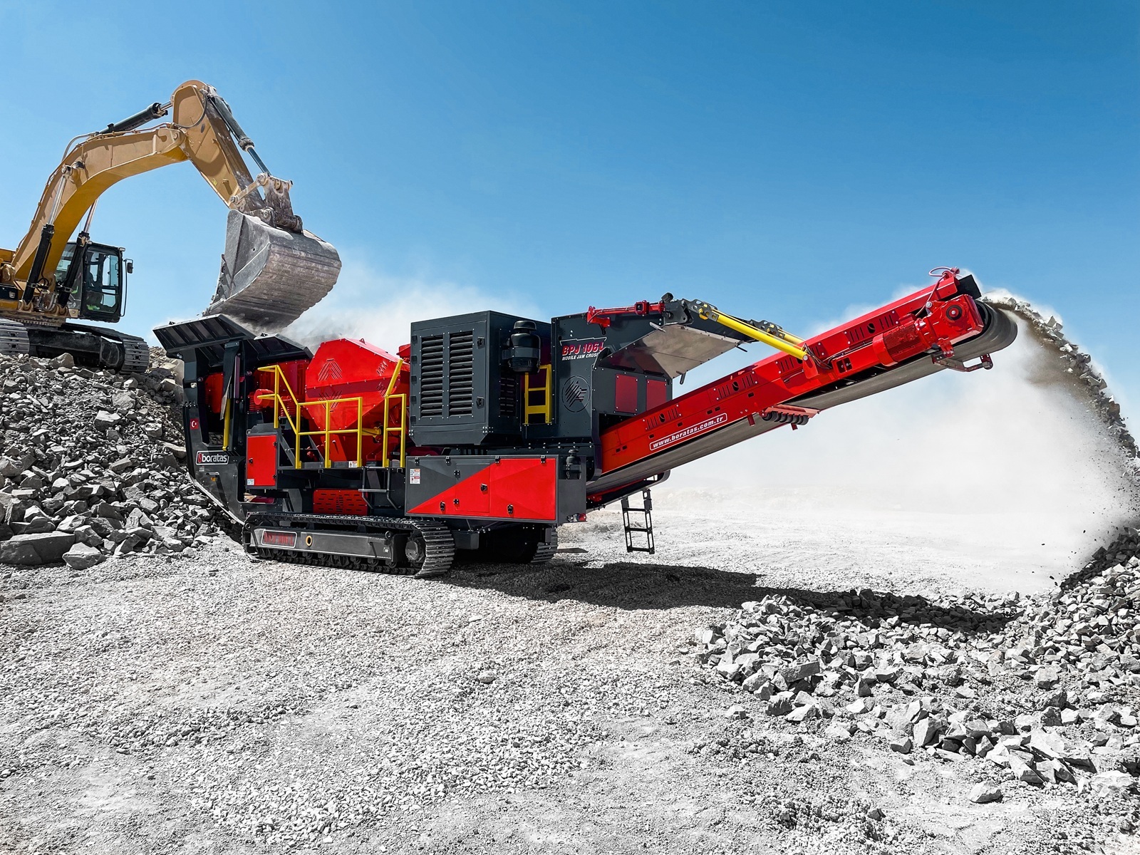 Boratas BCK Series stationary jaw crushers are heavy duty primary crushers designed for quarry and mining applications where reliable reduction and low cost per ton are important. They are built to crush a wide range of stone types, including hard and abrasive materials, while maintaining stable performance in continuous operation. The BCK Series covers different sizes to match different feed and capacity targets. Typical jaw opening sizes range from 610 × 380 mm up to 1300 × 1100 mm, with capacity ranges extending from low and medium outputs up to high capacity primary crushing depending on model selection. Key technical design points focus on durability and service practicality, including hydraulic jaw opening adjustment and protected wear zones for longer service life in demanding conditions. Manufactured in compliance with international quality standards. Supported by Borataş warranty and after sales service. For further technical details and project specific solutions, kindly visit our website: https://www.boratasglobal.com/en/products/stationary-jaw-crusher ****************************************************************** Standard Features • Belt and pulley drive system. • Crusher jaws and wear plates made of special castings with high resistance to abrasion. • Eccentric shaft made of Cr, Ni, Mo alloy forged steel. • Hydraulic adjustable jaw opening. • Safety plates against extreme stress. • All wear exposed surfaces coated with liner plates. Key Characteristics Primary Crushing for Hard and Abrasive Stone Designed for reliable primary reduction across different stone hardness and abrasiveness levels. Model Range for Different Plant Capacities Multiple crusher sizes support correct selection based on feed opening and target throughput. Hydraulic Jaw Opening Adjustment Jaw setting can be adjusted hydraulically to support stable operation and controlled product sizing. Wear Protection for Long Service Life Wear zones are protected with abrasion resistant jaws, wear plates, and liner plates to reduce downtime. Safety Under High Load Conditions Safety plates are used to protect the crusher against extreme stress conditions in heavy duty applications.