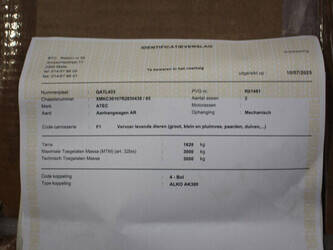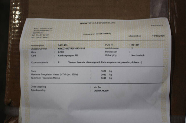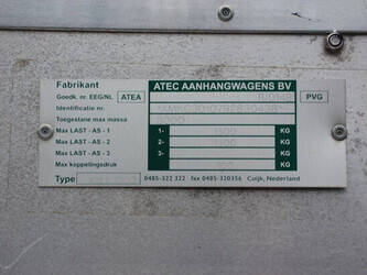 Brand: Atec Type: XXLL3000 Serial number: XMKC30107R2830438 Load capacity: 3000 kg Number of axles: 2