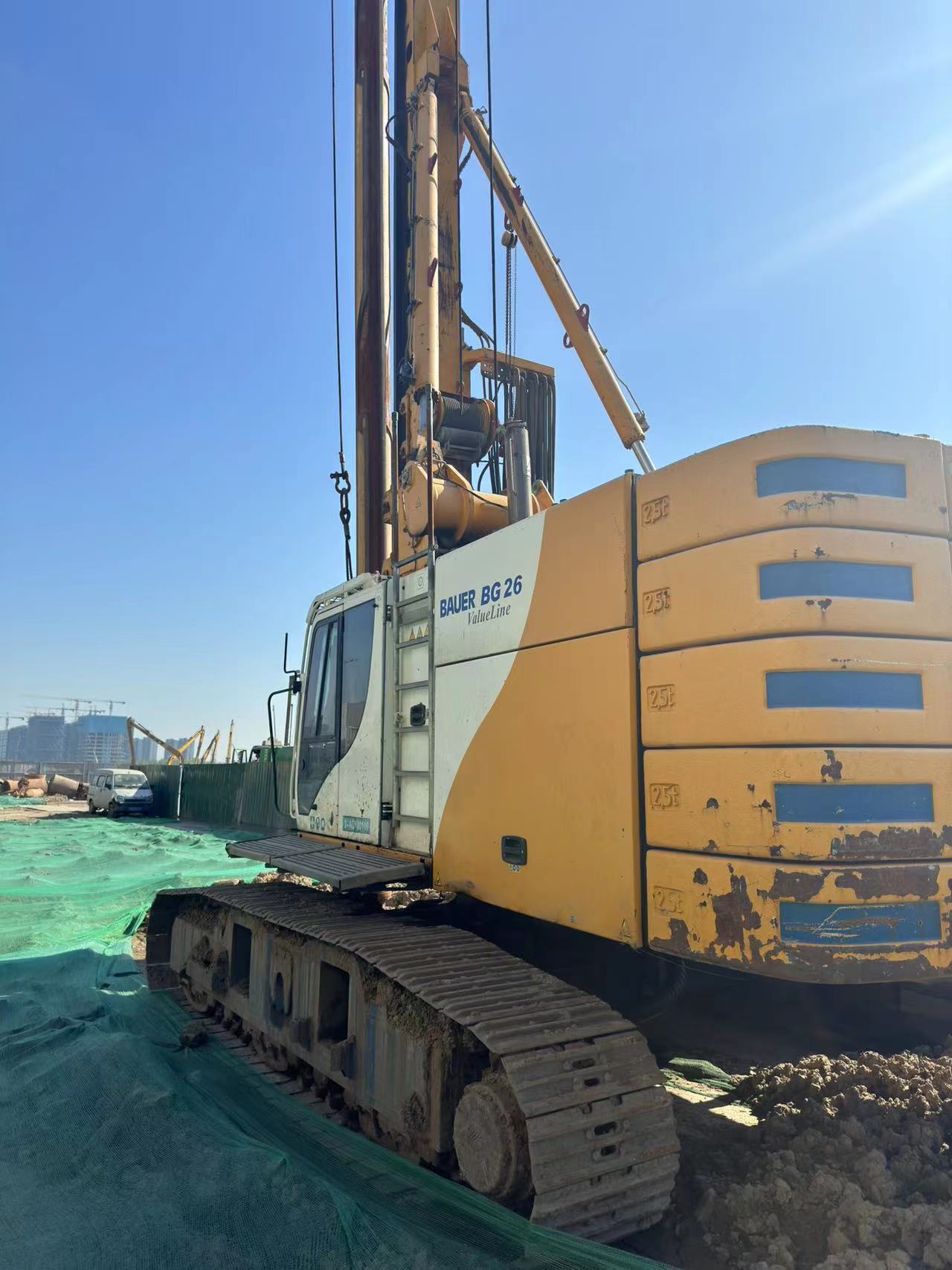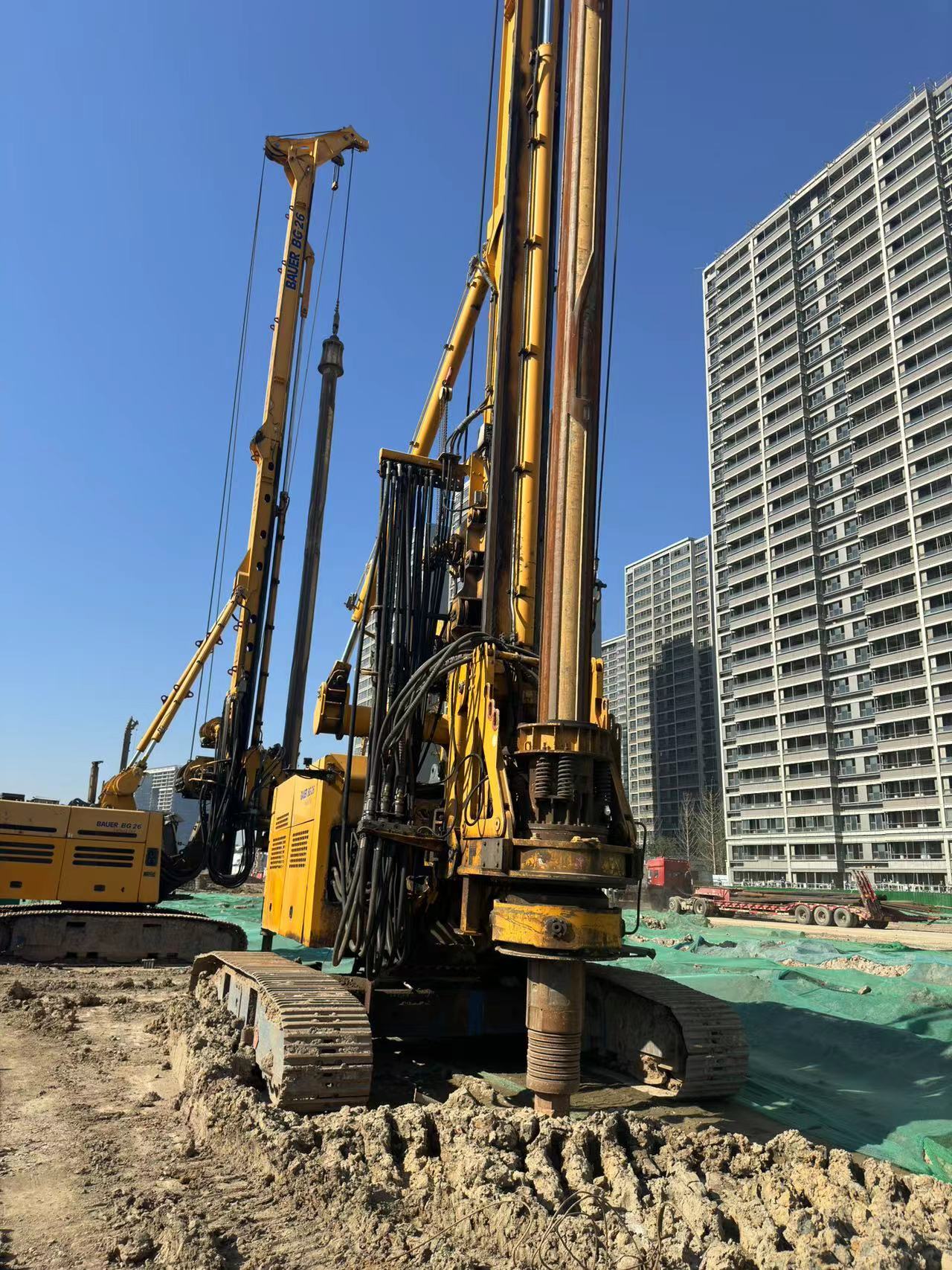 BAUER BG 26 Rotary Drilling Rig — High-Performance Piling Machine for Medium-to-Large Foundation Projects The BAUER BG 26 is a German-engineered, heavy-duty rotary drilling rig (piling machine) built on the BT 70 carrier. It delivers 264 kN·m maximum torque and a 261 kW CAT C9 engine, capable of drilling piles up to 2.5 m in diameter and 77 m deep. Designed for high-rise buildings, bridges, railways, and complex geology, it combines German precision, high efficiency, low fuel consumption, and long-term reliability.