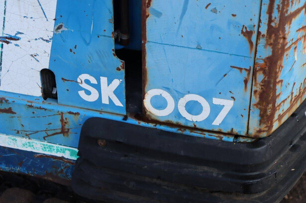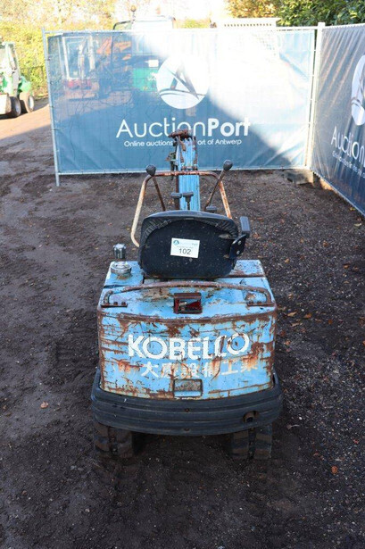 Brand: Kobelco Type: 2TNE68L-UTBA Serial number: PT00957 Year of construction: Not known Fuel: Diesel Motor power: 8 HP Quick change: No Recorded operating hours: 33,632 hours Undercarriage: Tracks Machine own weight: Not known Color: blue Machine description: Mini excavator is working.