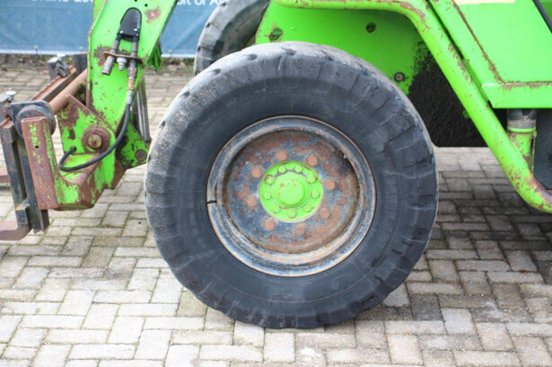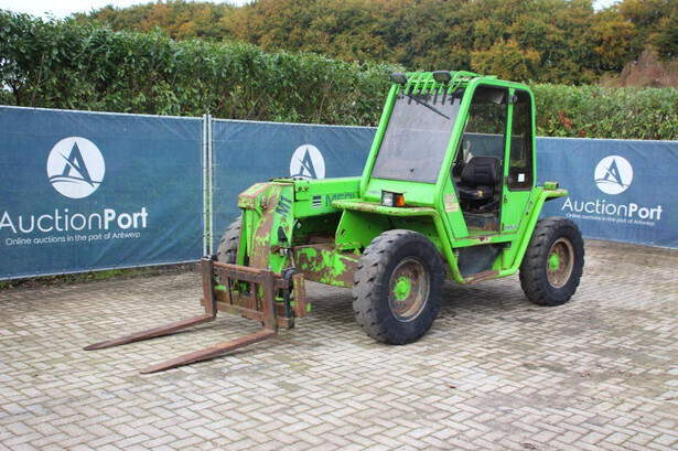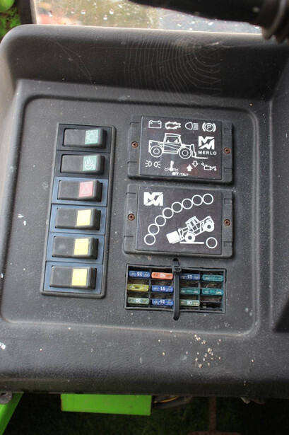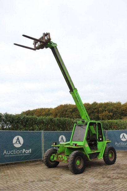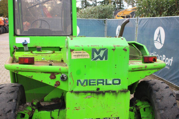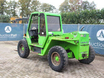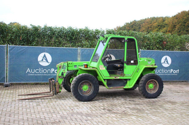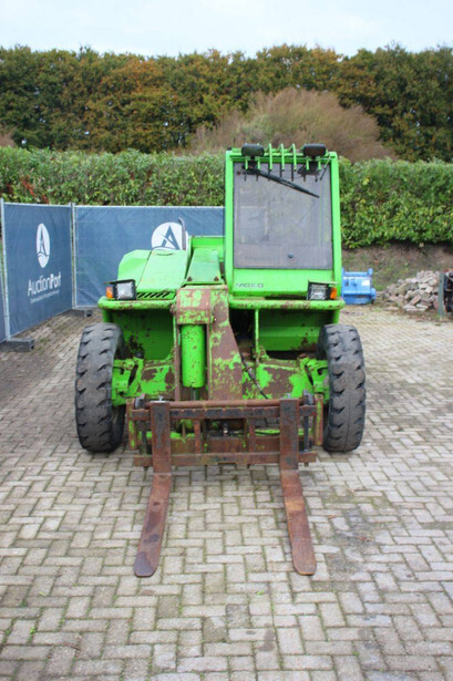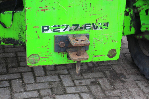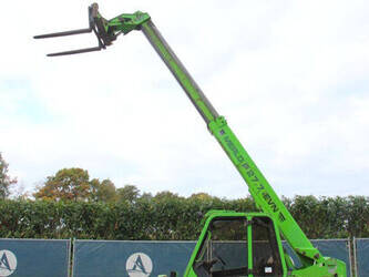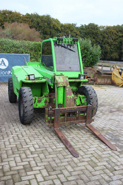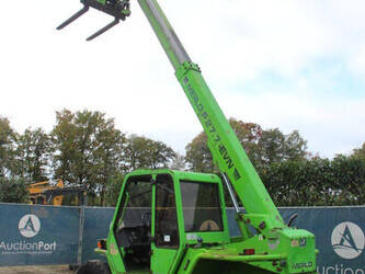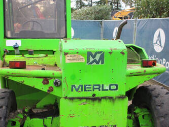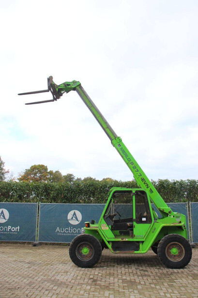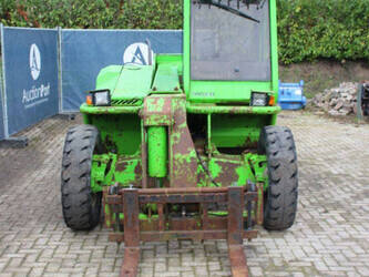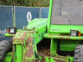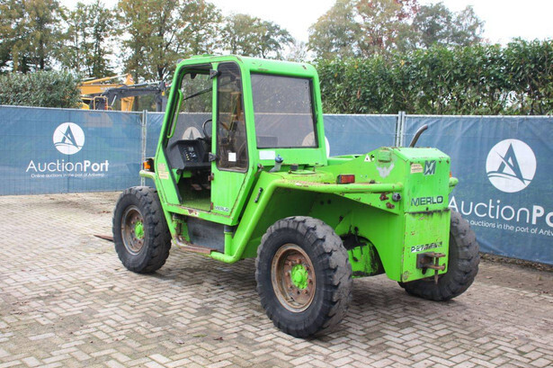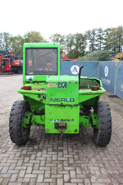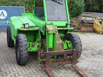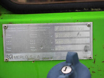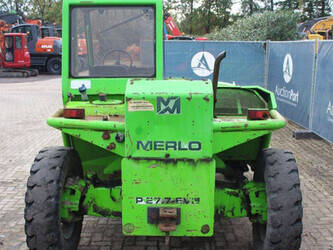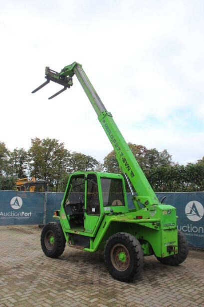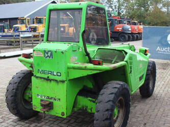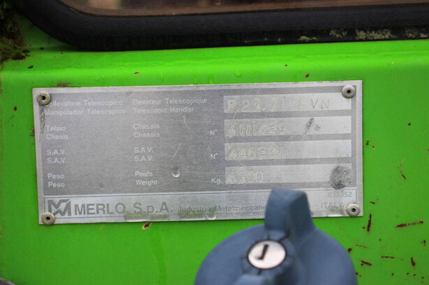 Brand: Merlo Type: P27.7 EVN Serial number: 446331 Fuel: Diesel Engine power: 62 kW Engine Brand: Perkins Lifting capacity: 2700 kg Lifting height: 7000 mm Operating hours read: 7520 h Machine weight: 6300 kg Tires: Pneumatic tires Color: green