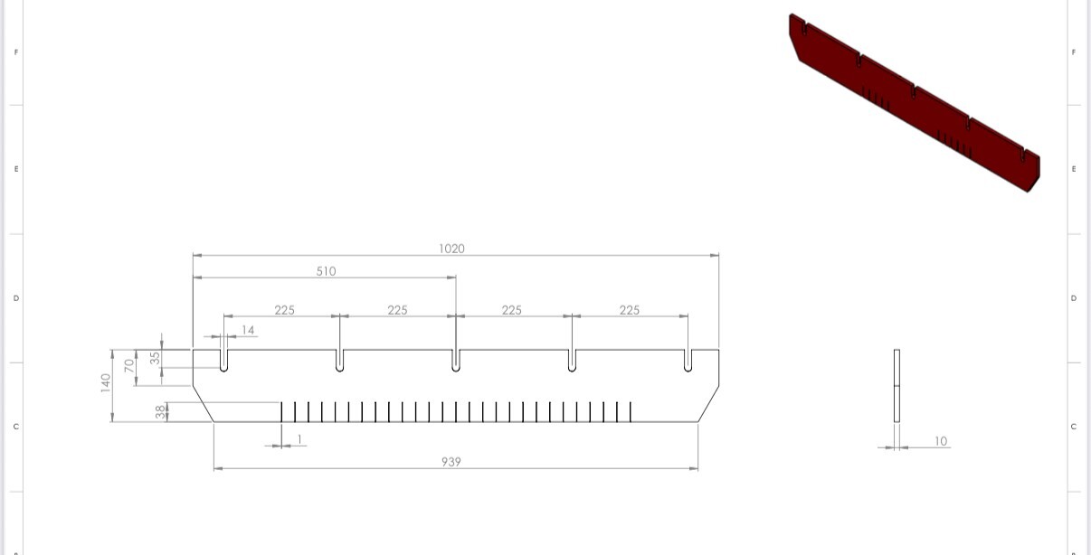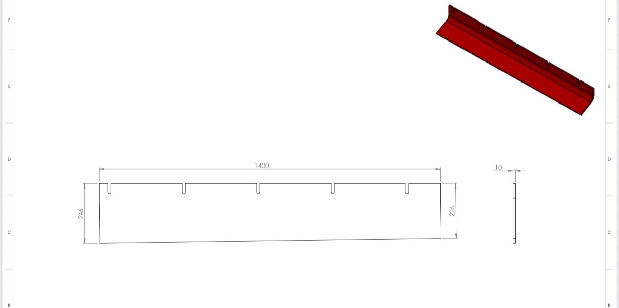 New Skirting Rubber (Large Selection) New Skirting Rubber for sale, Conveyor Belt Skirting Rubber. Large selection of NEW/UNUSED skirting rubber in stock and ready for sale. These rubbers have been manufactured to suit Crushing & Screening new builds but are no longer required. All manufactured in Ireland and new rubbers never used, we can also source new rubbers based on the length & width you require. We can supply a complete roll of skirting rubber in 10m or 20m if needed. Range of different lengths and widths, these rubbers are suitable for crushers and screeners but can also be used on a number of applications and can be used on wide range of applications. Special offers for package deals for 2 or more, Transport/Shipping can be arranged worldwide. Please inquire for more photos and details on all rubbers in stock. Package deals available. New Skirting Rubber (Large Selection) New skirting rubber, Used rubber belts, skirting rubbers, skirting rubber for sale, conveyor rubber, belt rubber. We have a drawing for each rubber which you can see in the images. Rubbers can be used as per drawings or can be cut to suit your application. See below our current stock of NEW rubbers – If you don’t see a size that meets your requirements get in touch today as we can supply any lengths and widths of rubbers. 0046-R2: 1400mm Long x 246mm / 226mm High – 10mm Thick (40 SHORE RED) – £ – See drawing in first image below (19 in Stock) 0046-R1: 1400mm Long x 186mm / 166mm High – 10mm Thick (40 SHORE RED) – £ – See drawing in second image below (9 in Stock) 0073-R0: 1020mm Long x 140mm High – 10mm Thick (40 SHORE RED) – £ – See drawing in third image below (2 in Stock) 0087-R1: 1060mm Long x 123mm High – 15mm Thick (40 SHORE RED) – £ – See drawing in fourth image below (1 in Stock) 0186-R1: 1405mm Long x 280mm High – 10mm Thick (40 SHORE RED) – £ – See drawing in fifth image below (8 in Stock) 0187-R1: 1900mm Long x 280mm High – 10mm Thick (40 SHORE RED) – £ – See drawing in sixth image below (7 in Stock) – No Length on drawing 0110-R0: 930mm Long x 493mm High – 7mm Thick (1 Ply Rubber BLACK) – £ – See drawing in seventh image below (1 in Stock) 0069-R0: 1087mm Long x 85mm High – 10mm Thick (60 SHORE BLACK) – £ – See drawing in eight image below (1 in Stock) – No Length on drawing 0040-R0: 2178mm Long x 163mm / 150mm High – 10mm Thick (60 SHORE BLACK) – £ – See drawing in ninth image below (2 in Stock) – No Length on drawing 0040-R1: 2191mm Long x 163mm / 150mm High – 10mm Thick (60 SHORE BLACK) – £ – See drawing in tenth image below (1 in Stock) – No Length on drawing 0095-R0: 1450mm Long x 100mm High – 10mm Thick (60 SHORE BLACK) – £ – See drawing eleventh image below (1 in Stock) 0063-R2: 4000mm Long x 100mm High – 15mm Thick (40 SHORE RED) – £ – See drawing twelfth image below (1 in Stock) If you require more information or to get a quote on shipping to your site / nearest port click here to contact us. Make New Skirting Rubber Availability In Stock Mobile No
