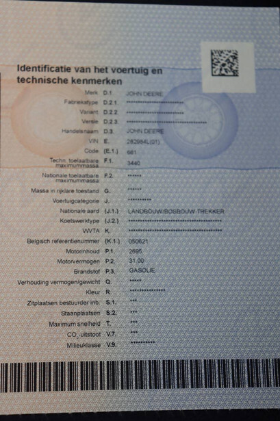 Machine description: Machine starts, drives and performs all functions. Belgian registration. All documents for registration are available. Machine with margin: VAT on this device has already been paid. The buyer does not pay VAT on this machine.