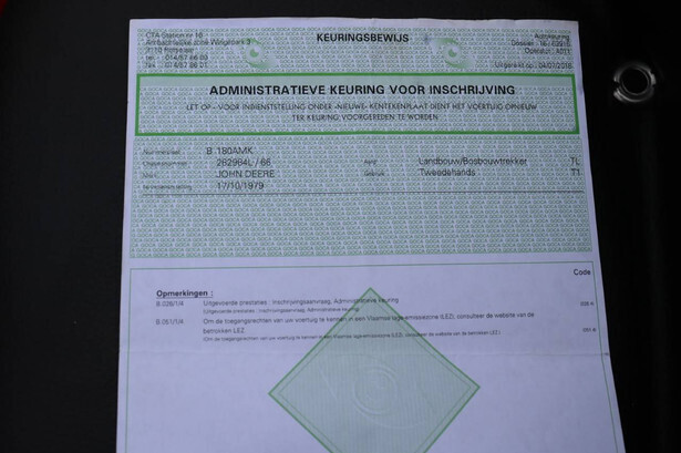 Brand: John Deere Type: 930 Serial number: 282984L Year of construction: 1979 Fuel: Gasoline Engine power: 42 HP Operating hours read: 3085 h Machine weight: 3440 kg Color: green