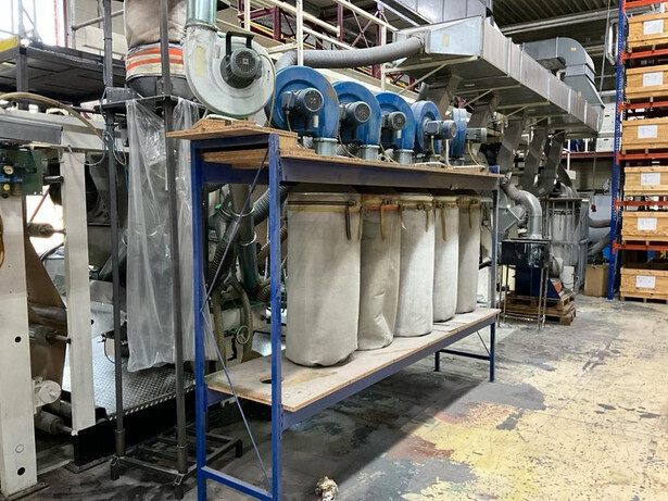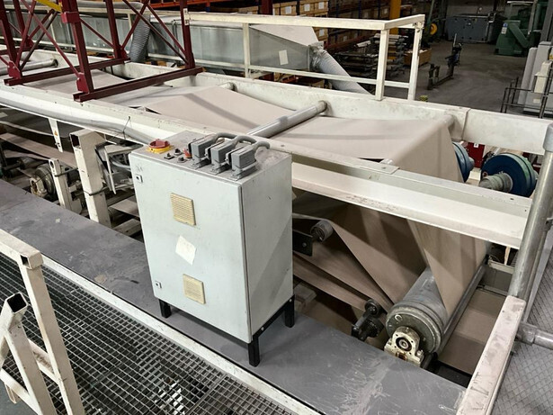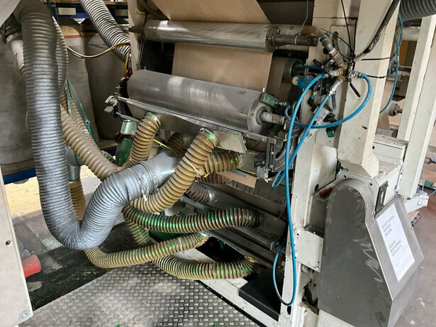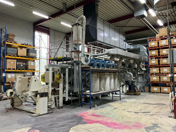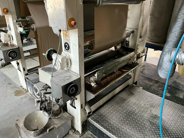 Consisting out of: unwinder, tension nip, 5x dying unit, 1x glitter unit, 7x single dryer, out feed tension nip, rewinder