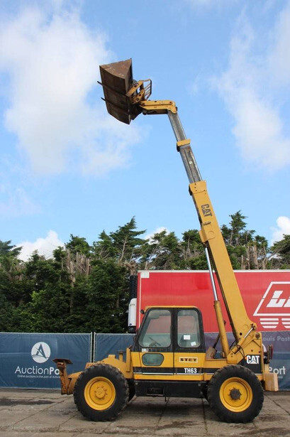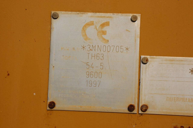 Brand: Caterpillar Type: TH63 Serial number: 5HK55847 Year of construction: 1997 Fuel: Diesel Engine power: 82.0 HP Engine Brand: Caterpillar Lifting capacity: Not known Lifting height: Not known Operating hours read: 12589 h Machine weight: 9600 kg Tires: Pneumatic tires Color: yellow