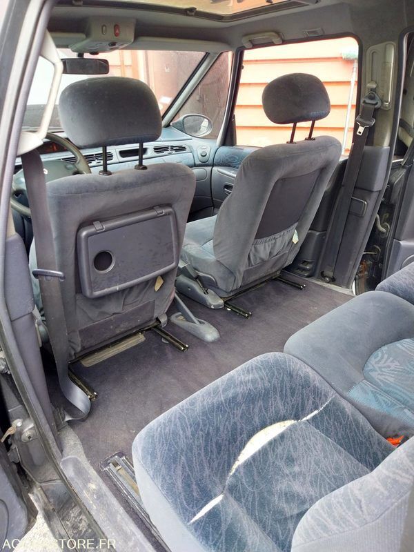 FR: Type de véhicule MONOSPACE Nb portes: 5 Etat carrosserie: Moyen Etat intérieur: Moyen Etat des pneus: 2 pneus avant neufs et arrière moyens Transmission: AVANT Version: RTE Etat soubassements: Bon état Crit'air: non Direction assistée - Centralisation des portes - ABS - Toit ouvrant (fuite) - Clim HS A vendre en l'état pour pièces -Transmission HS - Plus de compteur kilométrique - 7 places - 2 pneus avant en bon état et 2 autres arrière état moyen - Fuite essence réservoir - Fuite essence compartiment moteur - Fuite consommation courant batterie