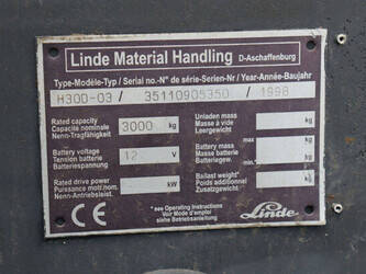 Brand: Linde Type: H30D-03 Serial number: 35110905350 Year of construction: 1998 Fuel: Diesel Mast type: Duplex Sideshift: No Lifting capacity: 3000 kg Reading operating hours: 19958 h Tires: Solid tires Color: red