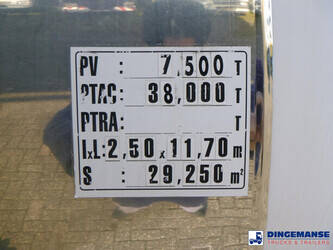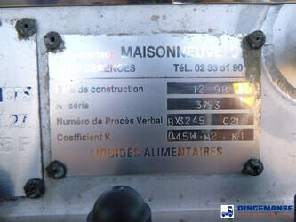 Food tank, Insulated stainless steel (inox), Capacity 32000 litres, 5 Compartments (9000; 5000; 7000; 4000; 7000), ABS, AIr suspension, SMB axles, Drum brakes, Shipment dimensions 1170x250x340 cm