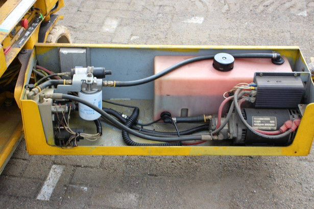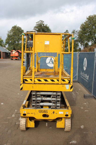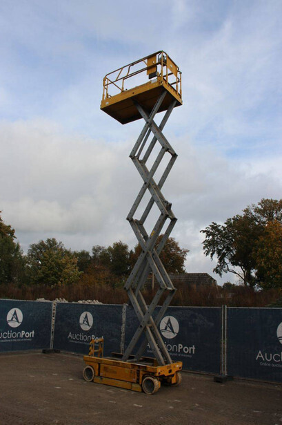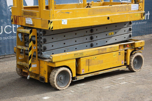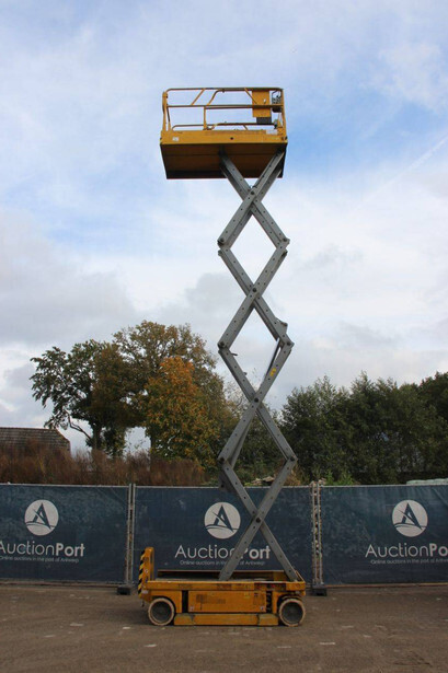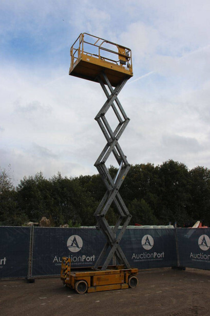 Brand: Genie Type: GS-2646 Serial number: 1A0428335 Year of construction: 1999 Fuel: Electric Lifting capacity: 454 kg Working height: 10 m Operating hours read: 1257 h Machine weight: 2054 kg Chassis: Wheels Type: Scissor lift Tires: Solid tires Color: yellow
